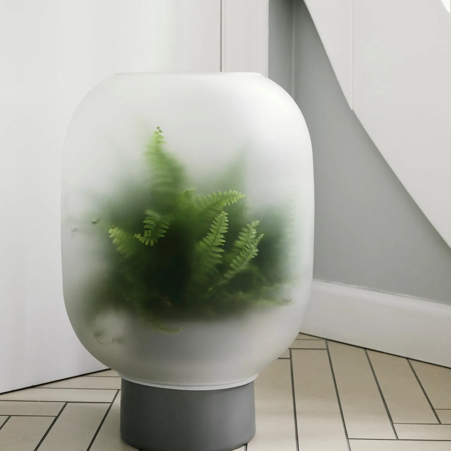 Smuk og innovativ Gejst urtepotteskjuler fra NEBL-serien. Urtepottens matteret glas er med til at skabe en fredfyldt fornemmelse på en tåget dag. Glassets åbninger har to forskellige størrelser, og kan derfor enten placeres højt på basen eller lavt på basen. Fås i flere varianter.