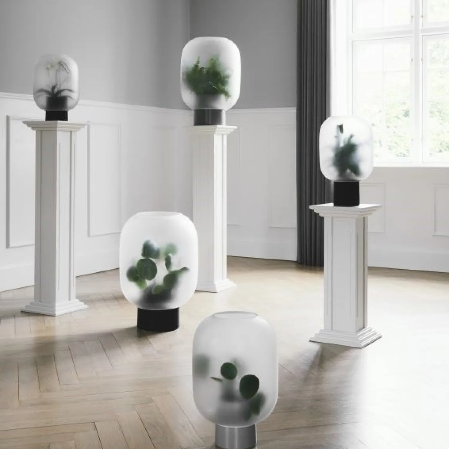 Smuk og innovativ Gejst urtepotteskjuler fra NEBL-serien. Urtepottens matteret glas er med til at skabe en fredfyldt fornemmelse på en tåget dag. Glassets åbninger har to forskellige størrelser, og kan derfor enten placeres højt på basen eller lavt på basen. Fås i flere varianter.