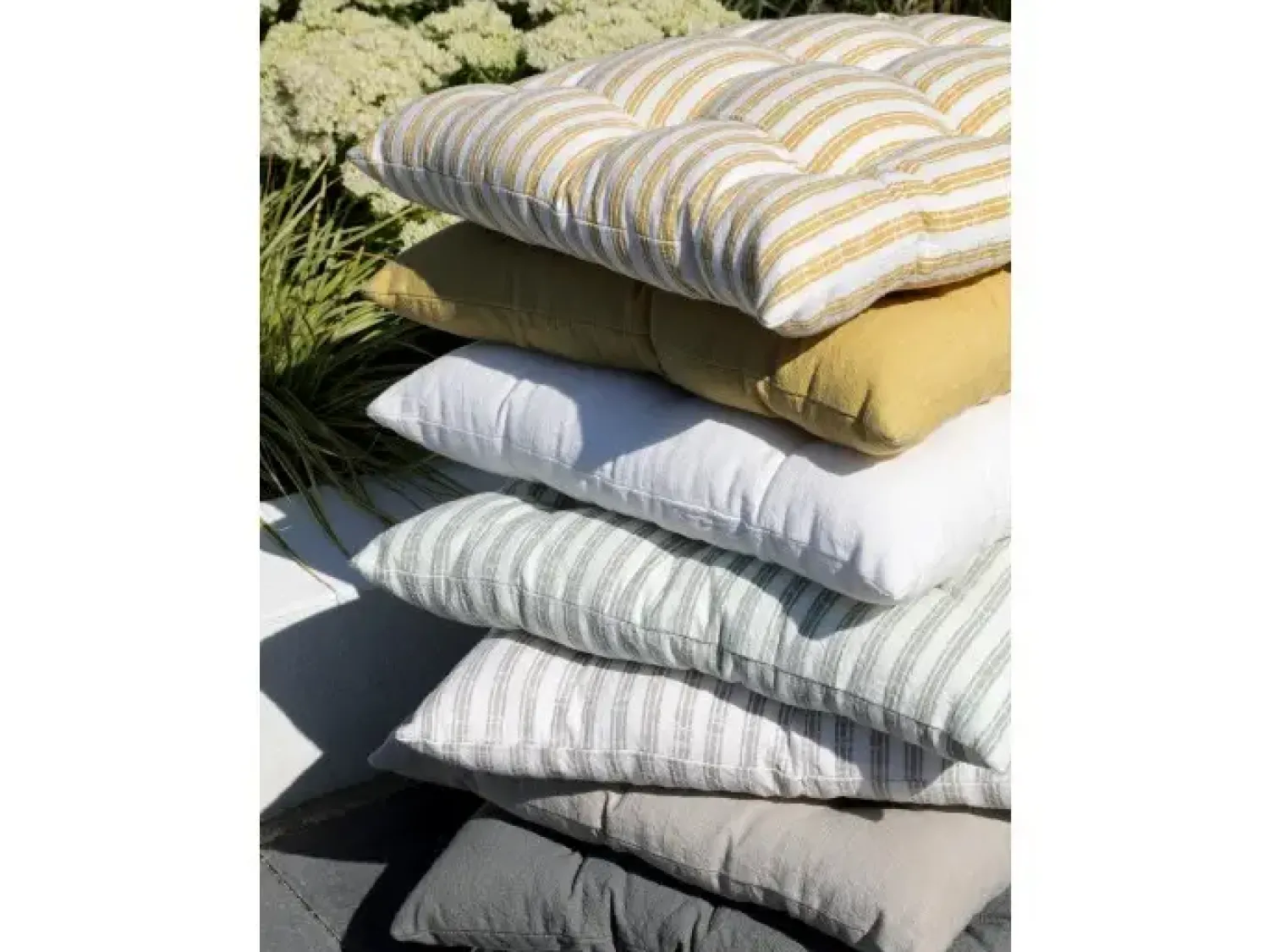 Super fin hynde fra Chic Antique i en frisk lysegul farve. Hynden har bindebånd så du kan sikre den til din havestol. Hynden gør, at du kan sidde behageligt på havestolen og at du uden problemer kan sidde og grille mens du nyder solen på terrassen i flere timer.