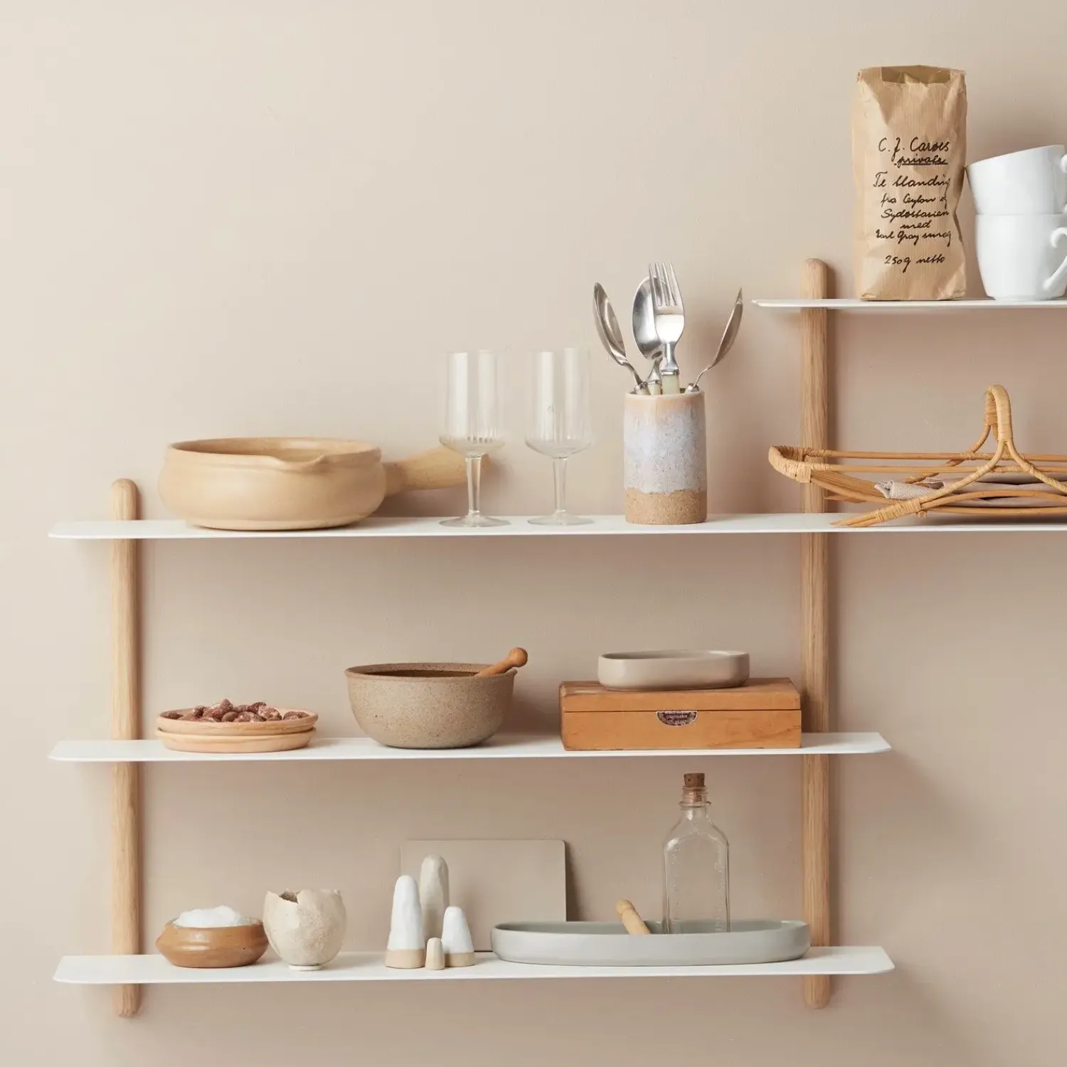 NIVO B væghylden kan med sit enkle og lyse udtryk hænge skarpt og hvor som helst i dit hjem. Hylden egner sig godt til små pynte ting, men kan også snildt anvendes ude i køkkenet, evt til krydderier eller andet som du vil har stående fremme.