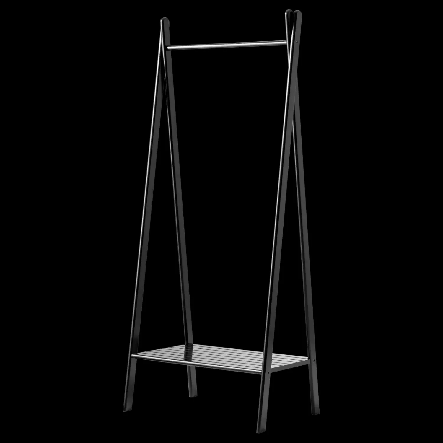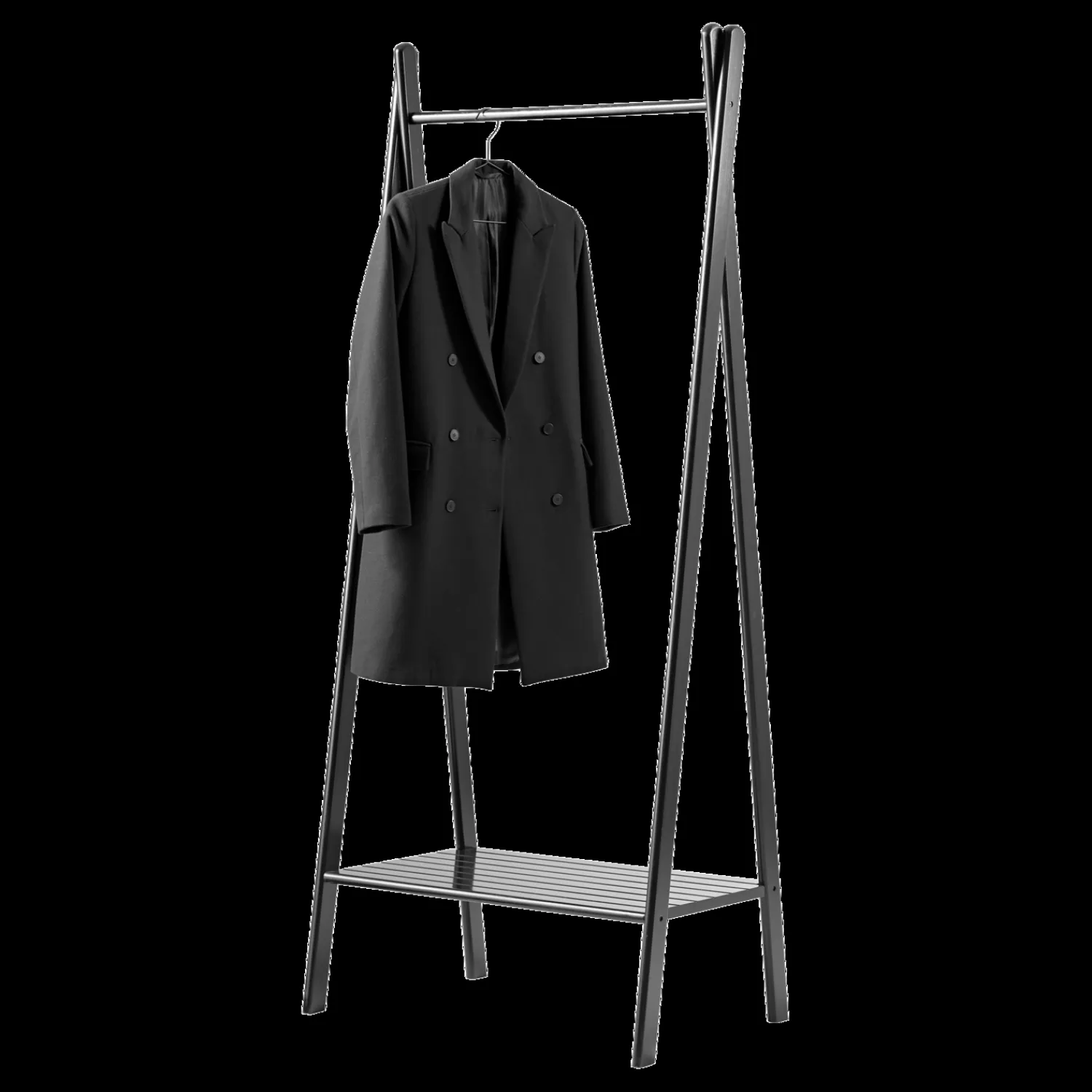 Cinas – Noble tøjstativ i sort bambus er en funktionel løsning til din garderobe. Dette tøjstativ er designet til at opbevare tøj og tilbehør i hjemmet. Med sin stilfulde sorte overflade passer det glimrende ind i moderne indretning og tilføjer et strejf af sofistikeret stil til ethvert rum.