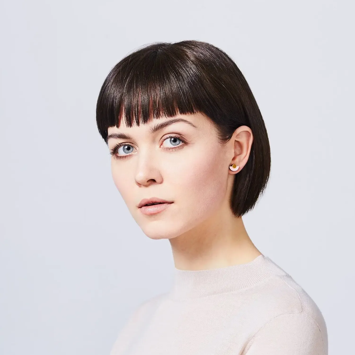 De smukke ørestikker fra Grundled af håndmalet, laserskåret træ og små messing kredse er fantastiske til enhver begivenhed og findes i fire forskellige farver: sort, mørkt træ og pastel pink.