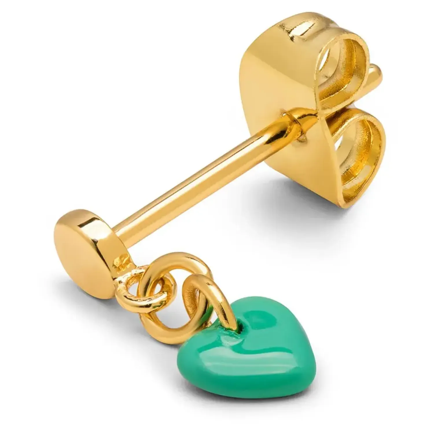 Materiale: Forgyldt messing, 50% genanvendt materiale, 18K, e-coating, emalje