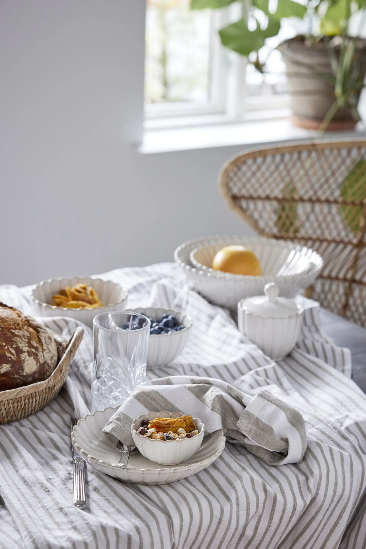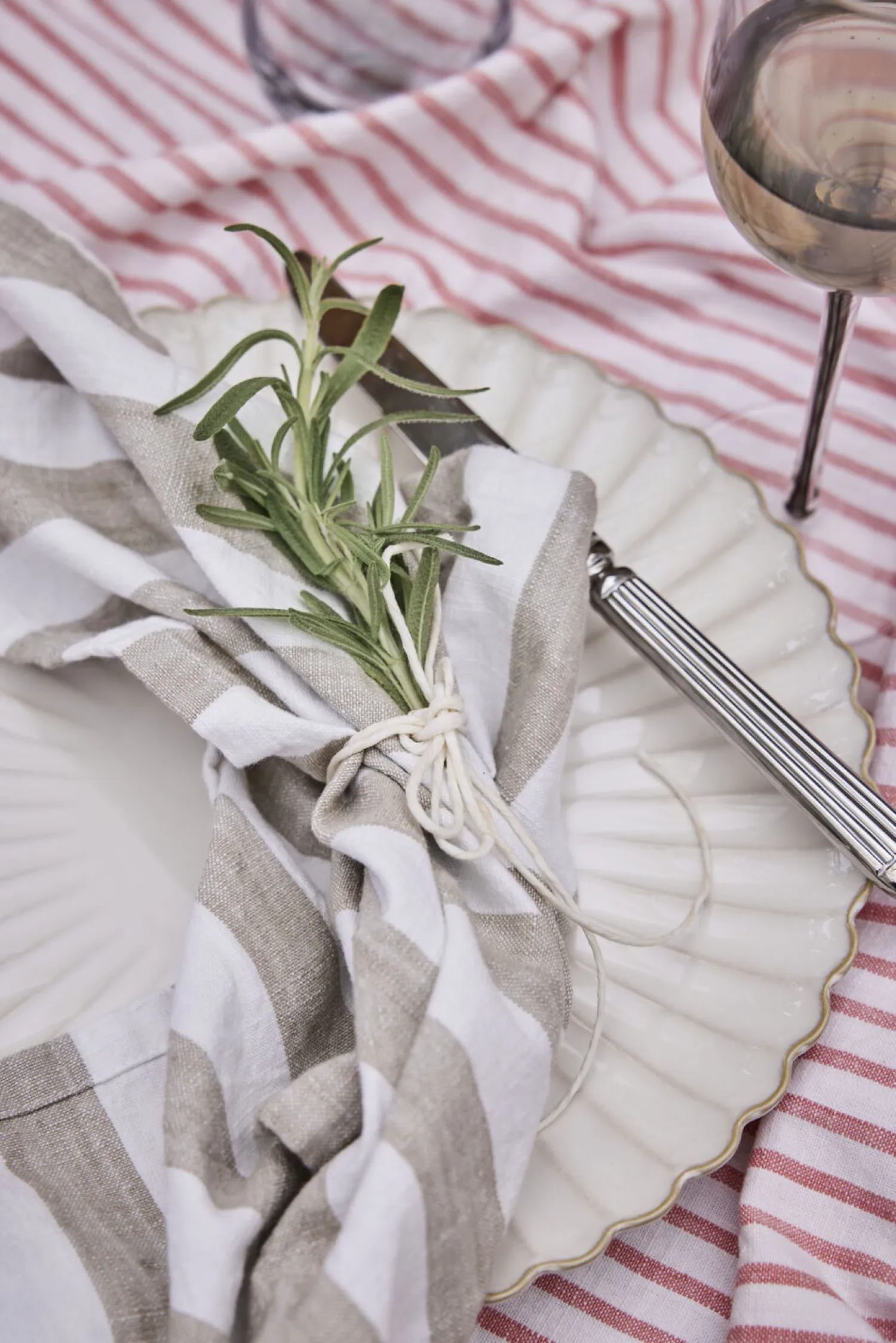 Olivia mundserviet er perfekt til både formelle og afslappede sammenkomster. Det klassiske stribede mønster giver både et tidløst og smukt look, der helt sikkert vil løfte enhver borddækning. mundservietten er lavet af 100% bomuld og vil holde i mange år fremover.