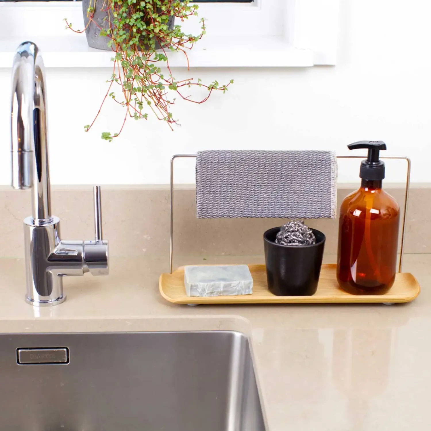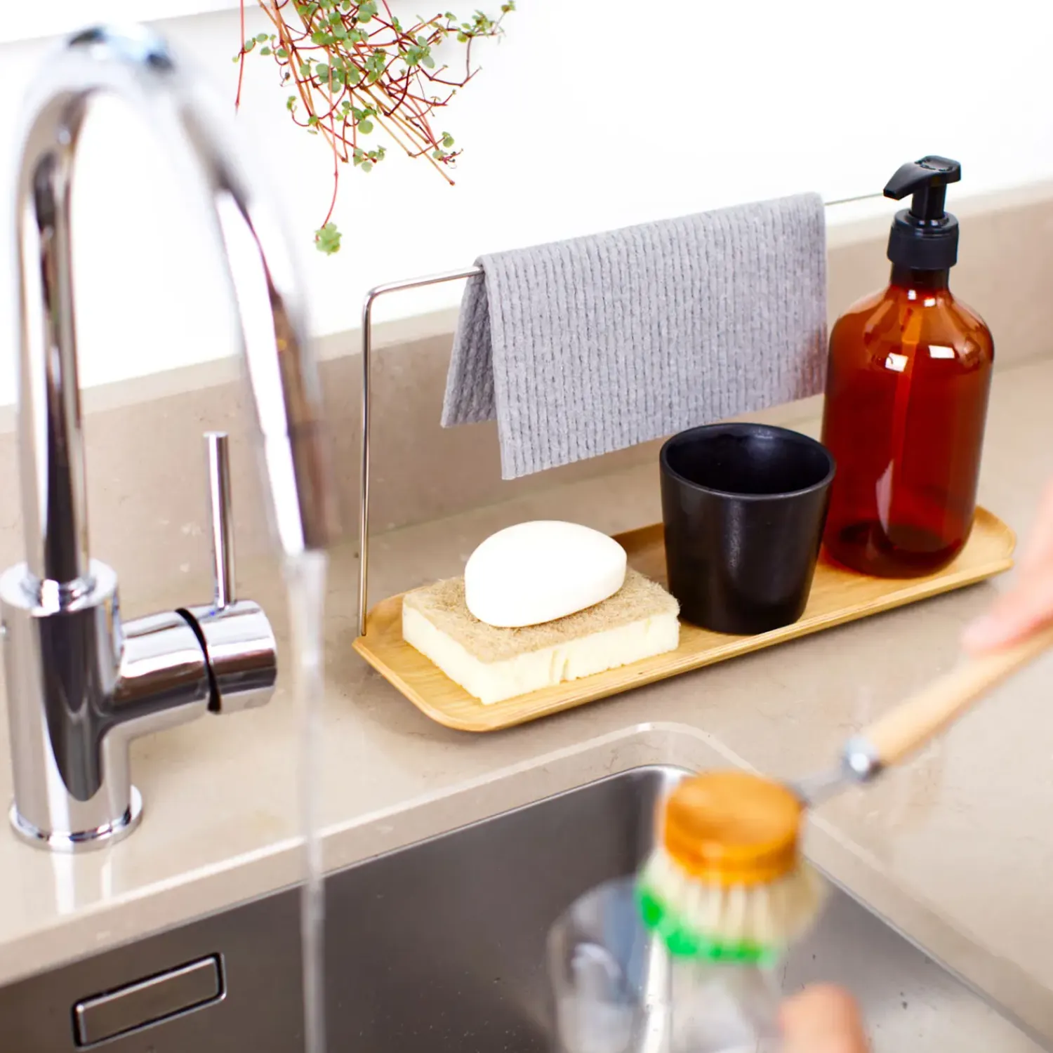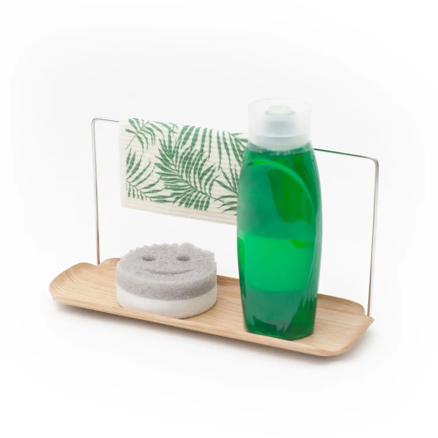 Med Bosigns LEAF opvaskestativ kan du samle opvaskemiddel, sæbedispenser, opvaskeklud og andre detaljer let tilgængelige på ét og samme sted ved køkkenvasken. Bosigns stilrene træbakke i vandfast træ er designet til at modstå det hårde miljø omkring køkkenvasken. Selvom den er lavet af træ, tåler bakken spild af f.eks. sæbe, opvaskemiddel og vand.