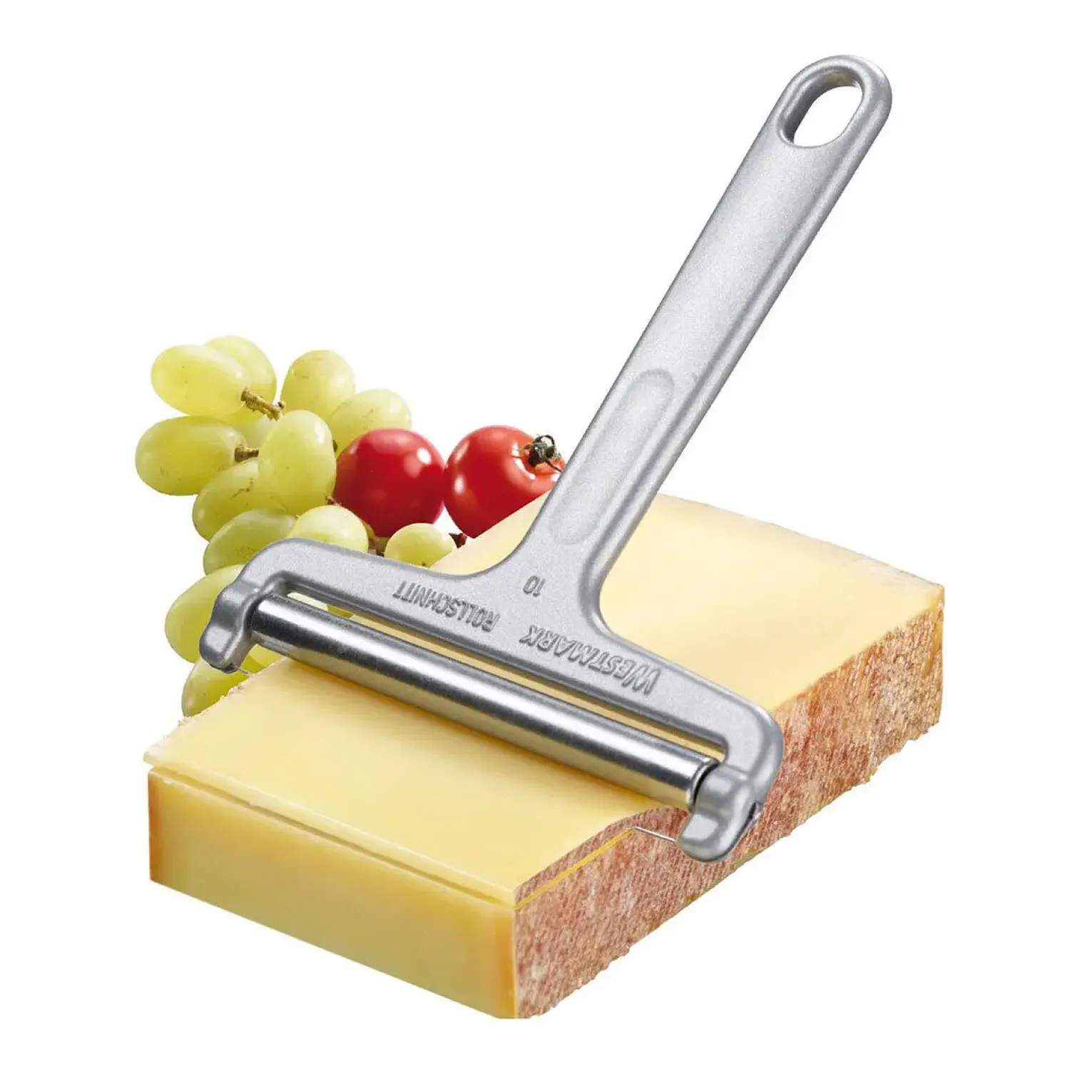 Westmark – Osteskærer – Rollschnitt er et praktisk redskab for osteelskere, der ønsker kontrol over deres osteskiver. Denne osteskærer er designet til at håndtere almindelige, halvfaste oste med en justerbar skivetykkelse, der giver fleksibilitet i skæringen. Med sit innovative rulleblad og muligheden for at tilpasse tykkelsen kan den imødekomme forskellige præferencer for osteskiver. Designet inkluderer et rulleblad, som bidrager til den effektive og præcise skæring.