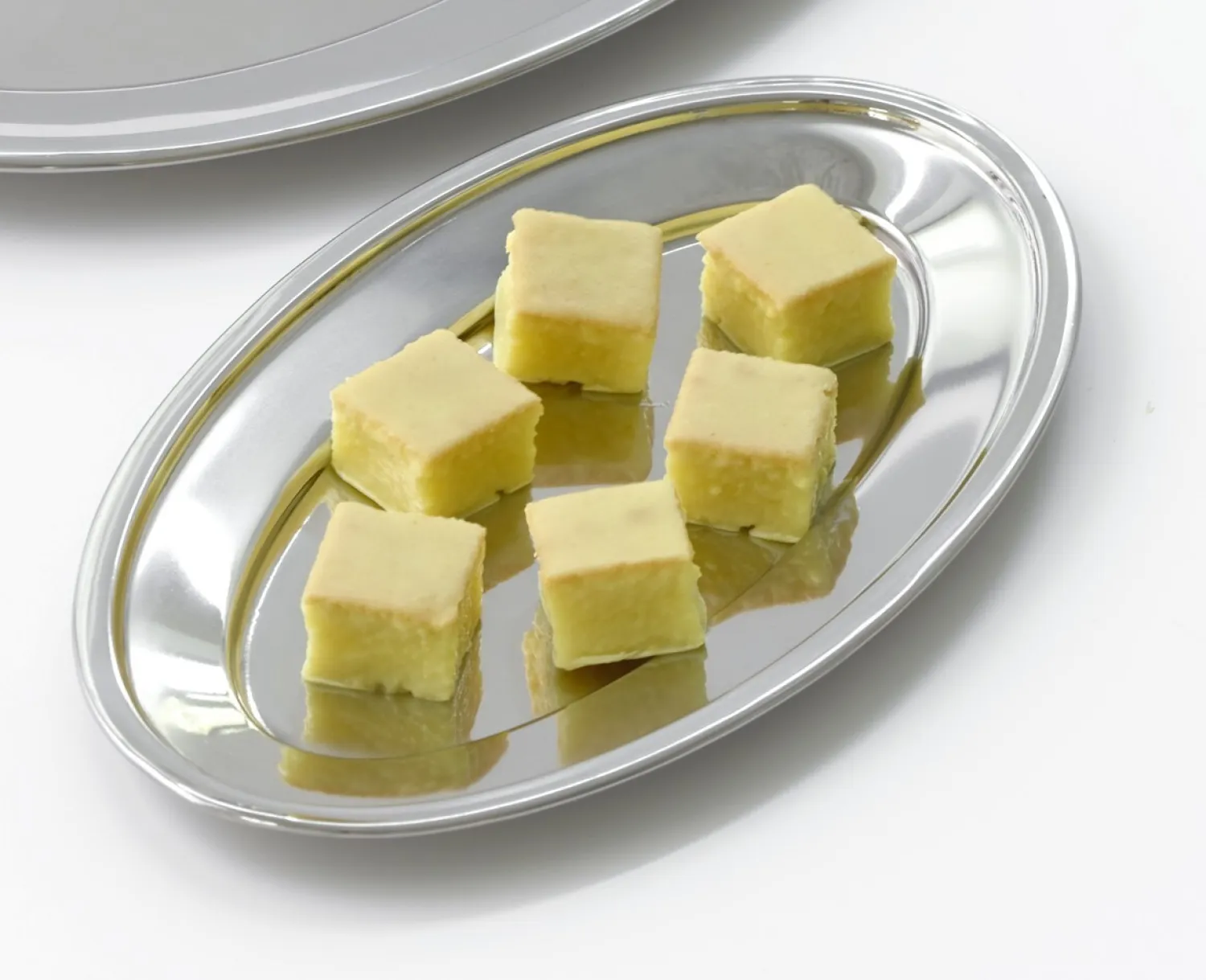 Dette serveringsfad i rustfrit stål kombinerer holdbarhed med praktisk design. Den blanke overflade er modstandsdygtig over for daglig brug, mens den ovale form gør serveringen nem og bekvem ved dit spisebord.