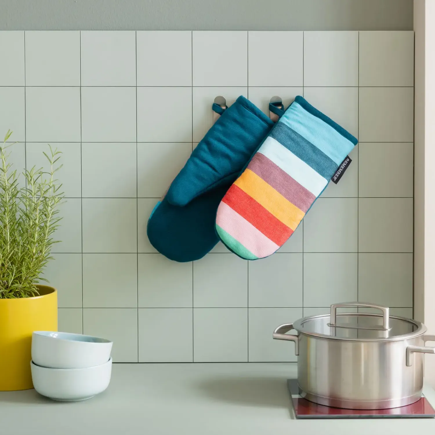 REMEMBER® No. 2 ovnhandsker giver beskyttelse, når du håndterer varme gryder og fade. Dette sæt med to handsker kombinerer funktionalitet med et stribedesign. Uanset om du bager, griller eller laver mad, er disse ovnhandsker designet til at hjælpe dig i køkkenet.