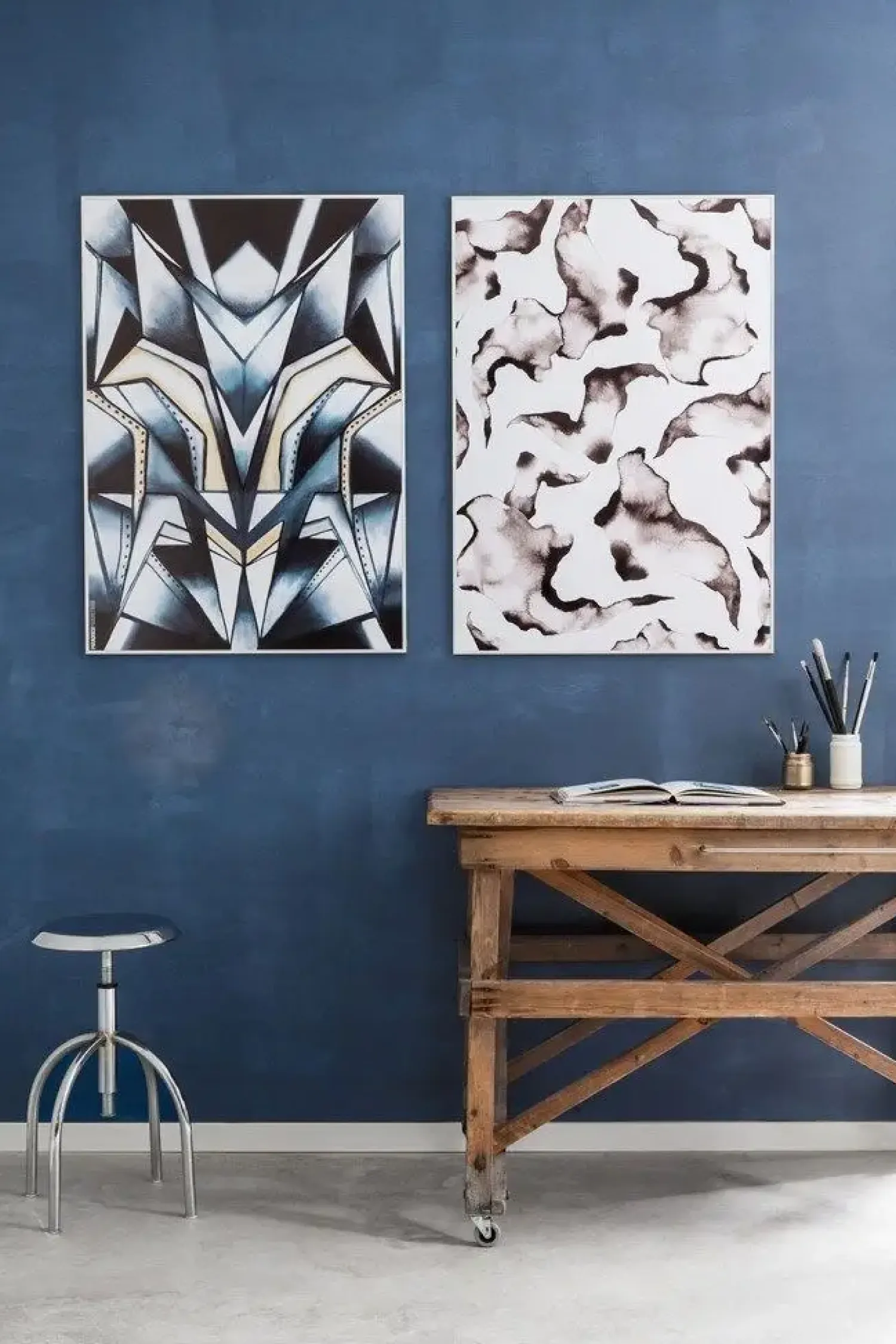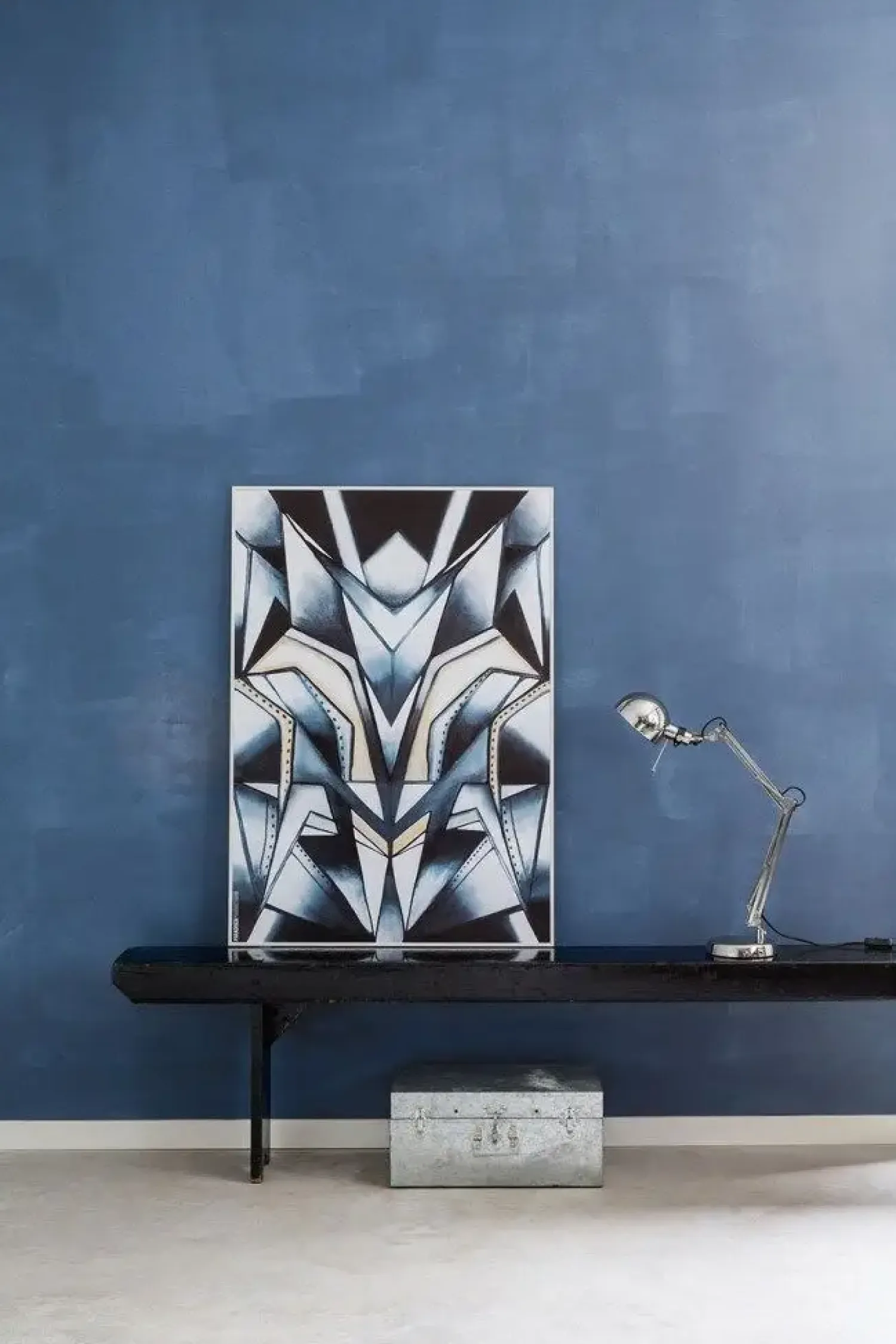 Lyst rammer mørkt, og spidse og blanke former skaber en rå og komplet balance i illustrationen. Det metalliske look er dannet af dip-dye og skyggeeffekter, og de rå industrielle detaljer mødes i en højere enhed i motivet.