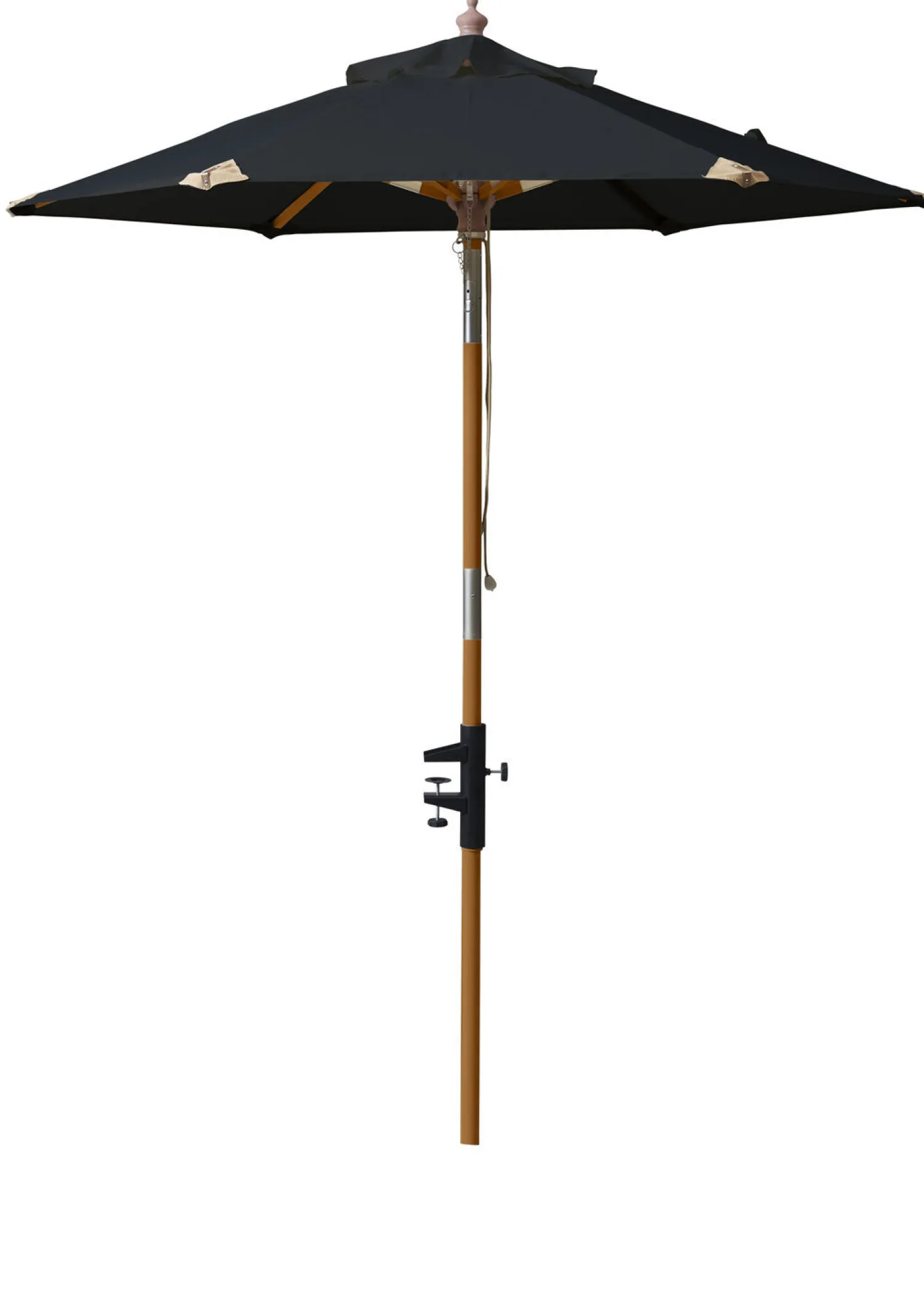 Cinas – Parasol (balkon) Ø1,8 m Sort polyester dug er en praktisk løsning til udendørs områder. Denne parasol har en række funktioner, der kan være nyttige på en balkon eller terrasse.