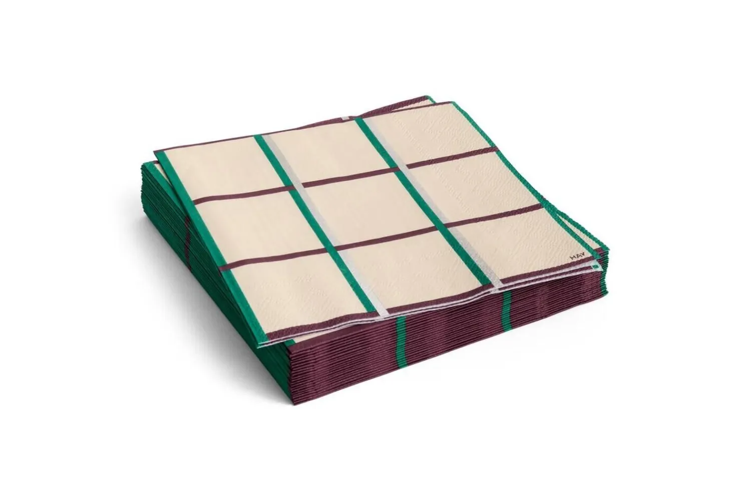 Disse servietter fra Hay byder på et karakteristisk ternet mønster i off-white med grønne og sølvfarvede linjer. De måler 33 x 33 cm udfoldet og er fremstillet i blødt tissuepapir, hvilket gør dem velegnede til både hverdags- og festlige middage.