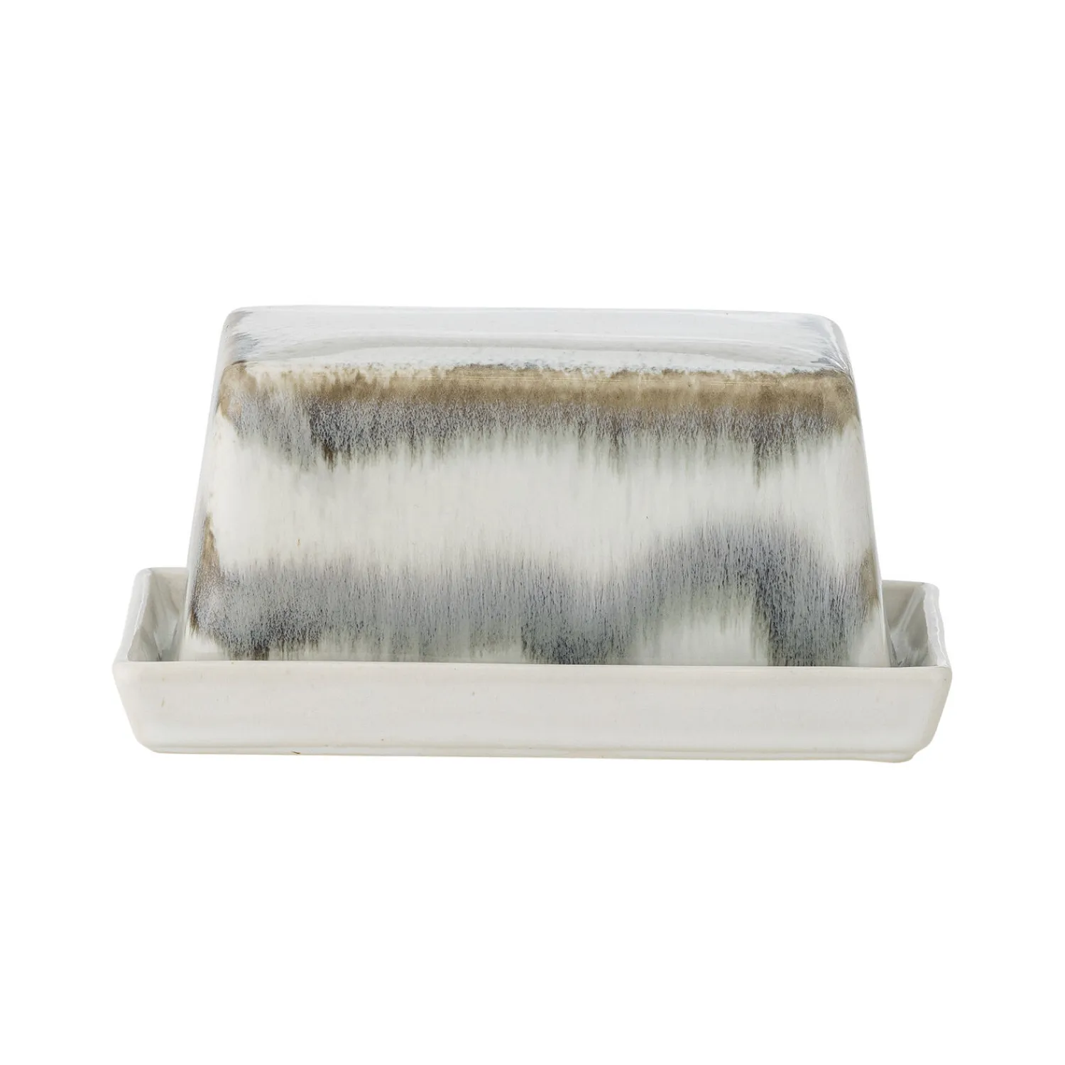 Hver smørboks har sin egen karakter takket være glasurens naturlige farvevariationer. Den grå farve passer diskret ind i de fleste køkkener, mens det tætsluttende låg holder dit smør frisk længere.