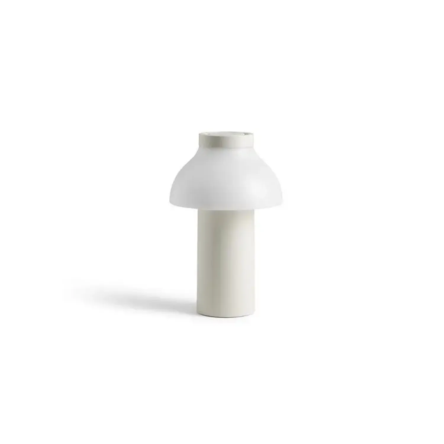 Den cremehvide finish og den karakteristiske form med cylindrisk base og kuppelformet top er fremstillet i holdbart ABS og PP. Materialevalget sikrer både stabilitet og et rent udtryk, der passer ind i enhver indretning.