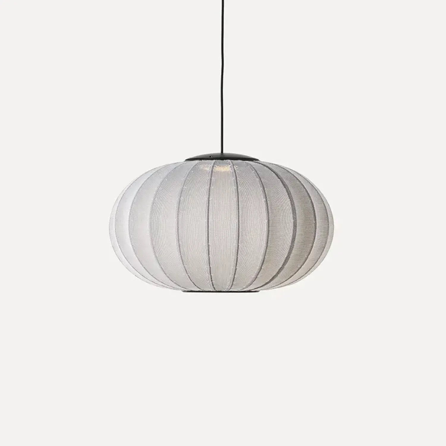 Denne ovale pendel kombinerer dansk håndværk med funktionelt design. Den er fremstillet af 3D-strikket, brandhæmmende genanvendt polyester, som skaber en særlig tekstur og fordeler lyset jævnt. Med en højde på 35 cm passer den til forskellige rumstørrelser.