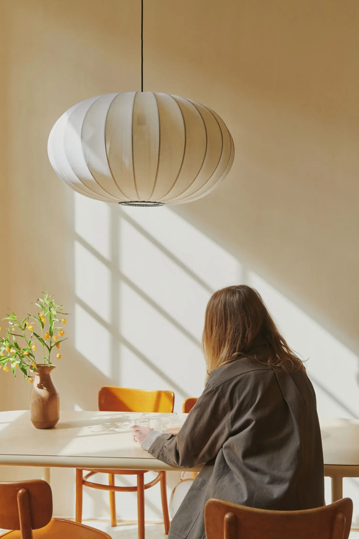 Knit-Wit pendellampen kombinerer 3D-strikning med moderne LED-teknologi. Du kan justere lysstyrken efter behov, mens den strikkede struktur skaber et blødt lysspil i dit rum.