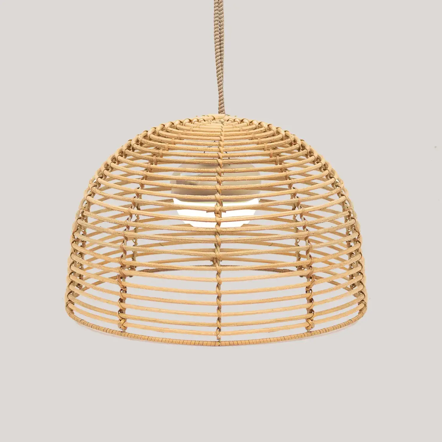 Nature Bossa-lampen leveres med et 3 meter langt reb, lampeskærm (tulipa) og en pære med 3 lysstyrker op til 500 lumen samt en batterilevetid på 6 til 20 timer.