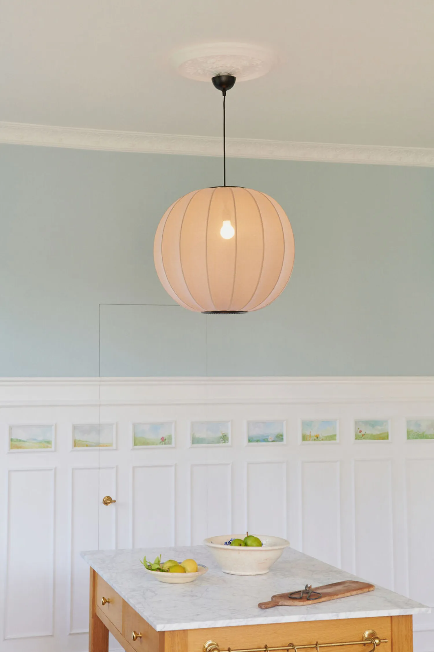 Denne pendellampe kombinerer håndværk med moderne belysning. Materialet af brandsikkert, genanvendt polyester skaber en jævn lysfordeling. Den er produceret i Danmark med fokus på kvalitet og holdbarhed.