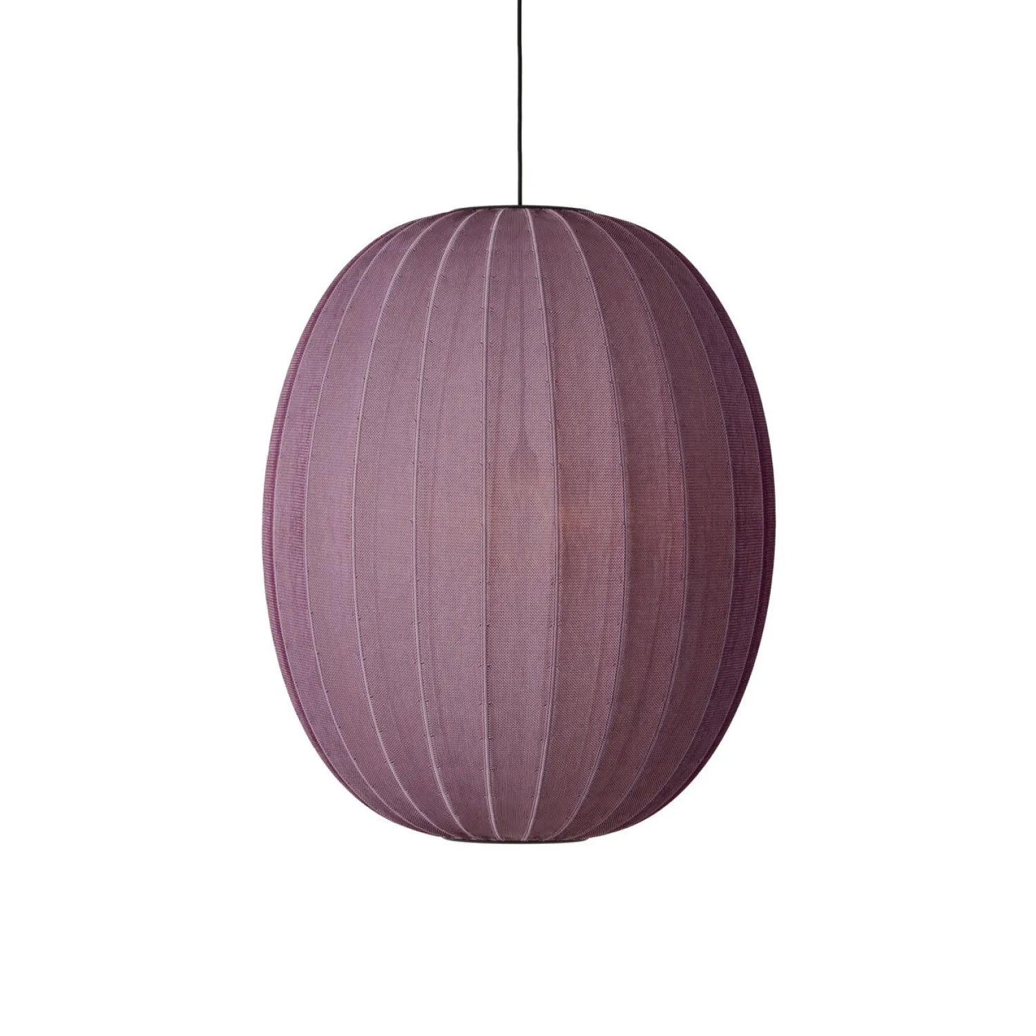 Håndlavet i Danmark med fokus på kvalitet. Den 86 cm høje pendel kombinerer traditionelt håndværk med moderne teknologi gennem 3D-strikket design i genanvendt polyester. Lampen passer til både private og professionelle omgivelser.