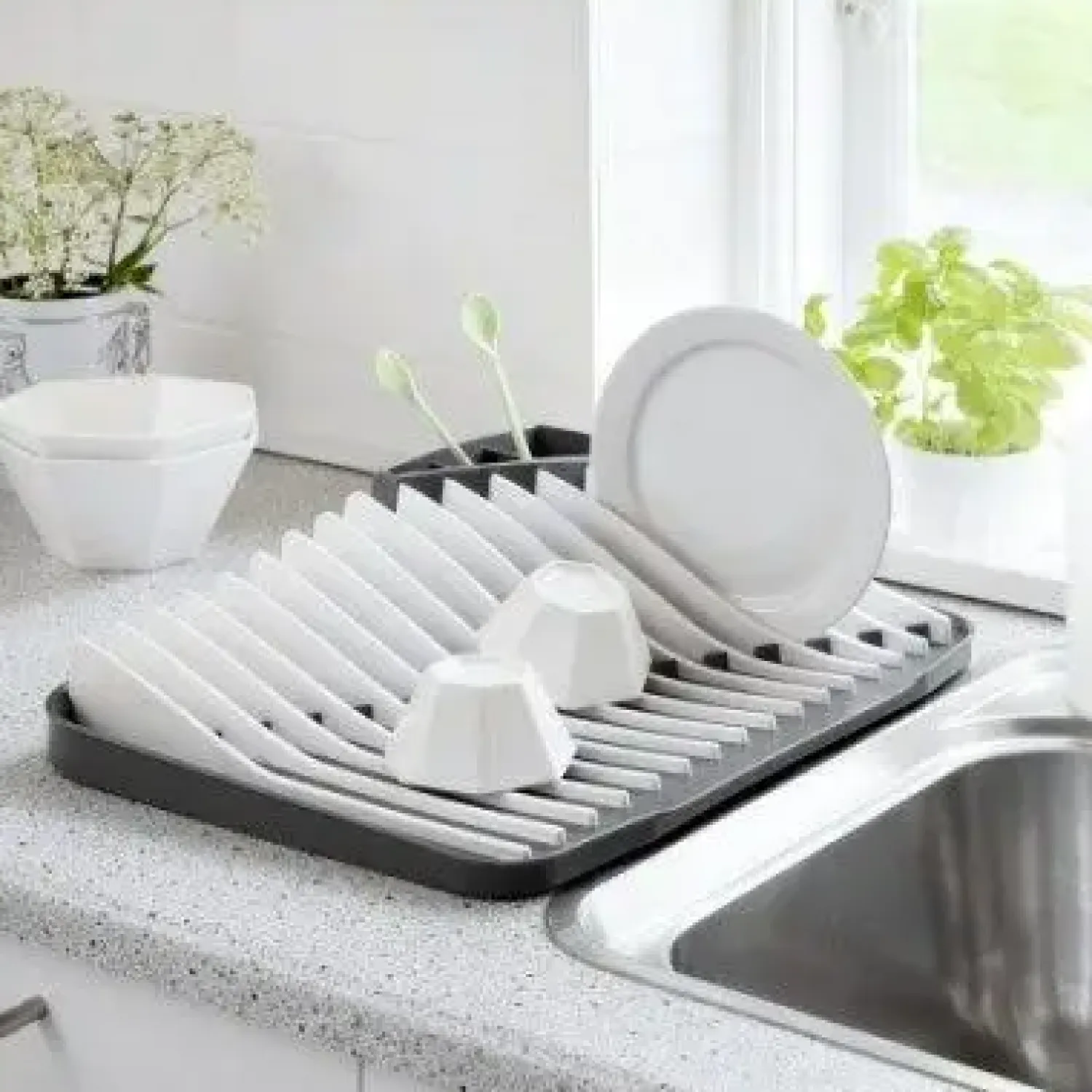 Den gennemtænkte opdeling i stativet sikrer, at dit service tørrer hurtigt og effektivt. Inddelingen holder dine tallerkener og kopper adskilt, så du undgår ridser og skader, mens servicet tørrer naturligt efter opvasken.