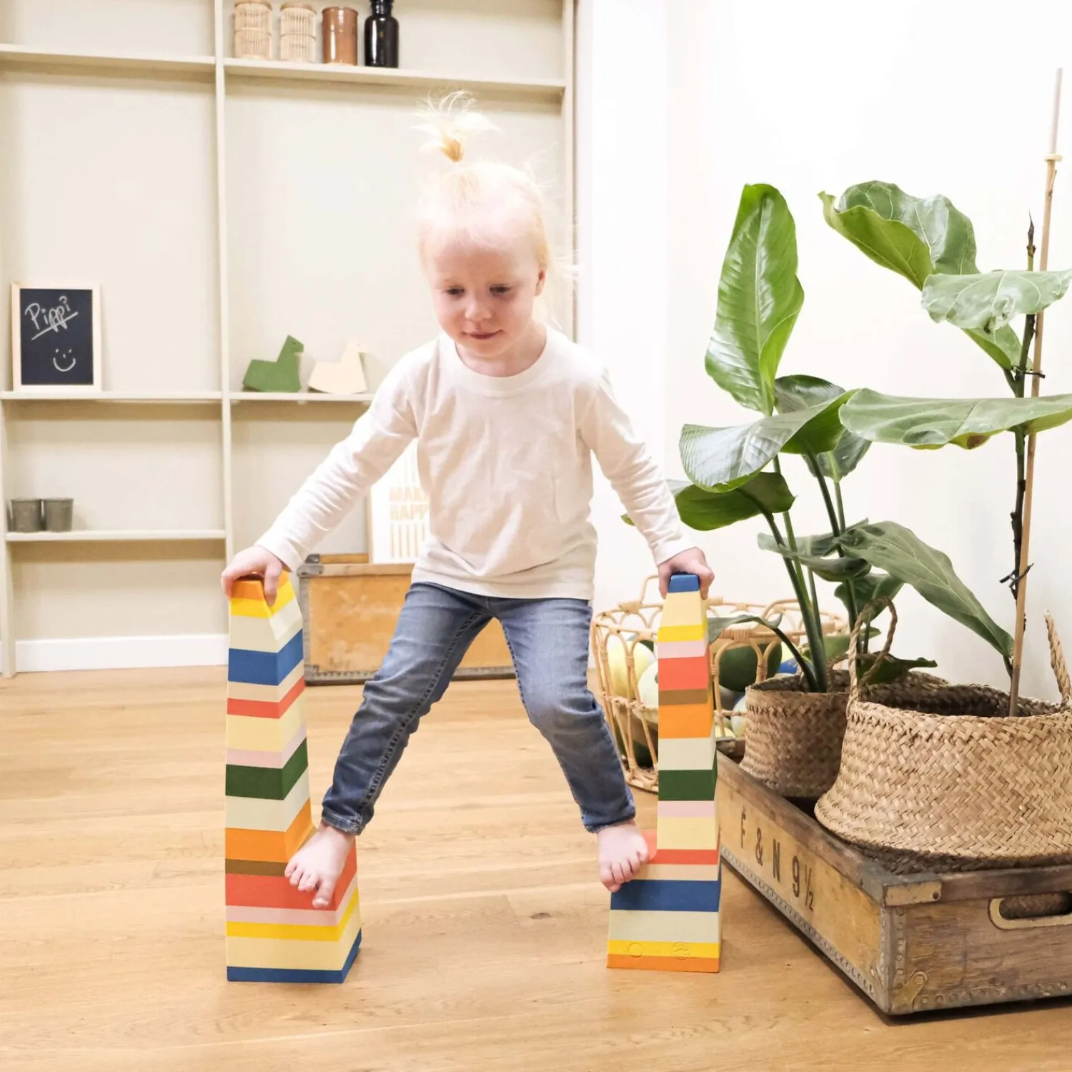 Hvis du søger legetøj, der kan bruges på flere måder, giver stylterne en praktisk løsning. De kan samles til en bænk, hvilket betyder, at de ikke kun fungerer til balanceøvelser, men også som siddeplads eller en del af andre legeaktiviteter. Dette gør dem anvendelige i forskellige situationer og sparer plads i hjemmet.