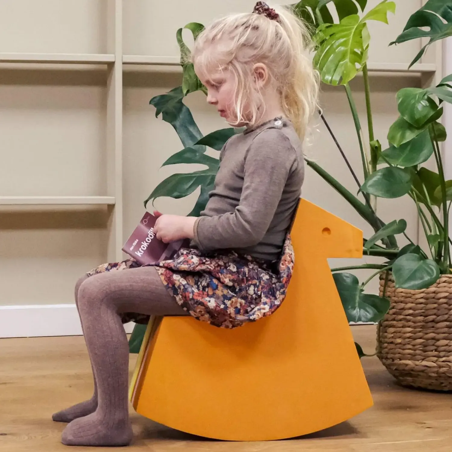 Hvis du søger legetøj, der kombinerer sjov med motorisk udvikling, giver den buede bund dit barn mulighed for at træne balance gennem naturlig gyngebevægelse. Den ustabile overflade aktiverer kroppens stabiliseringsmuskler, mens dit barn leger og udforsker forskellige positioner på hesten.