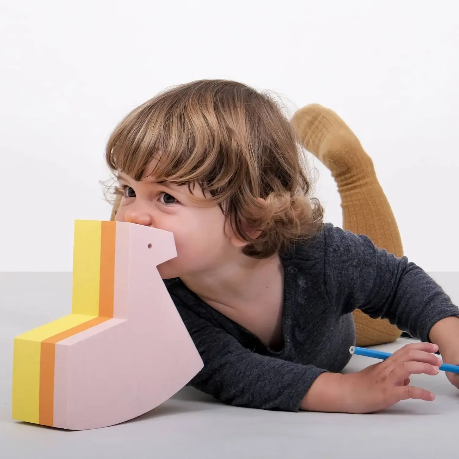 En farverig legekammerat inspireret af Pippi Langstrømpe, designet til de mindste eventyrere. Minihesten kombinerer fantasifuld leg med praktiske funktioner, der gør den nem at bruge både indendørs og under badetid. Inkluderet er en bog med aktiviteter, der tilføjer ekstra værdi til legen.