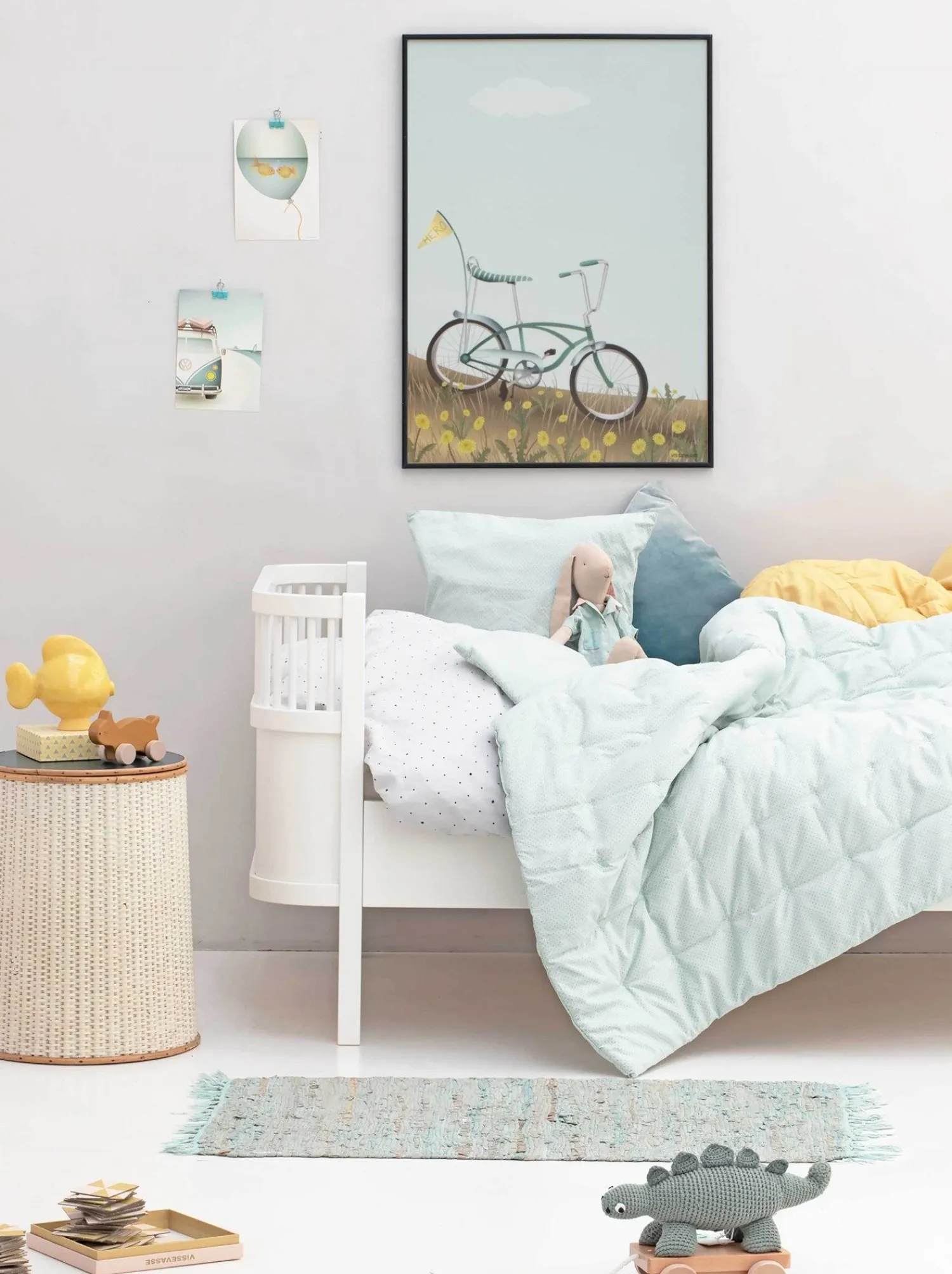 Fin plakat til børneværelset fra ViSSEVASSE. Den ikoniske cykel med det brede bagdæk og det høje styr. Her kan du sidde helt tilbagelænet og tage på eventyr på to hjul. Ja faktisk kan man snildt være to på sadlen. For en lille knægt er det den ultimative ven på to hjul. Den er retro med et sporty look. Den minder lidt om en motorcykel. Og når bare man træder hårdt nok i pedalerne, føles det som om, man kører lige så hurtigt som en.
