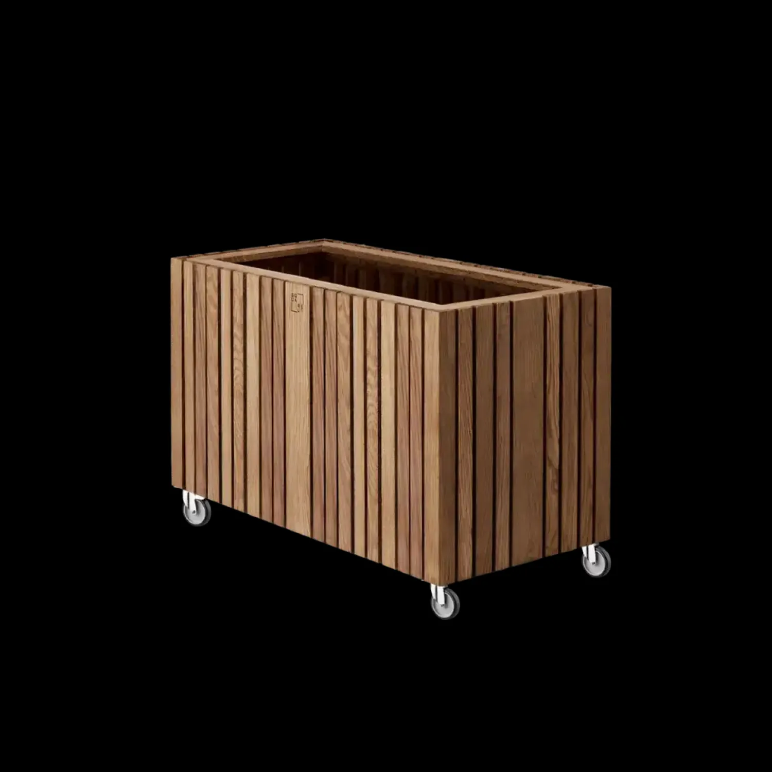 Leder du efter en praktisk og stilfuld plantekasse? GrowLARGE er håndlavet i mørk eg med vertikale trælameller. Den fungerer som en naturlig rumdeler og har et skjult selvvandingssystem med en 20L beholder, der reducerer vedligeholdelsesbehovet markant.