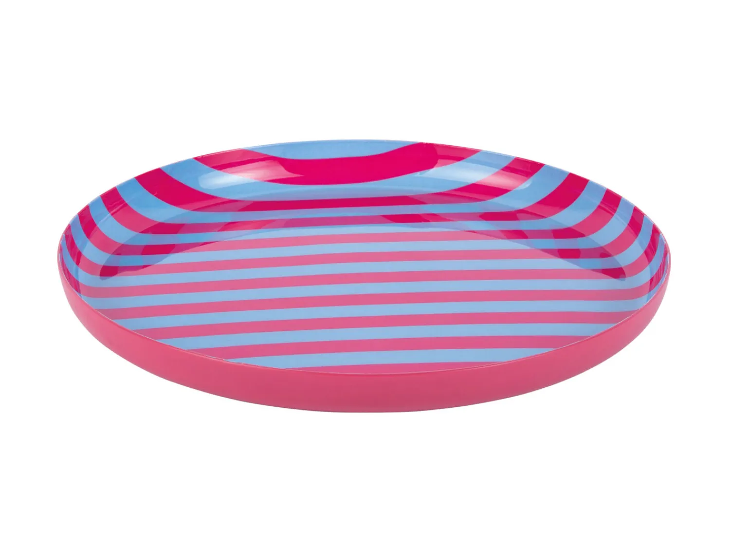 Denne tallerken kombinerer lys pink med bløde blå striber i et moderne design, der tilføjer farve til din borddækning. Med en diameter på 22 cm er den praktisk til servering af forskellige retter – hverken for stor eller for lille.