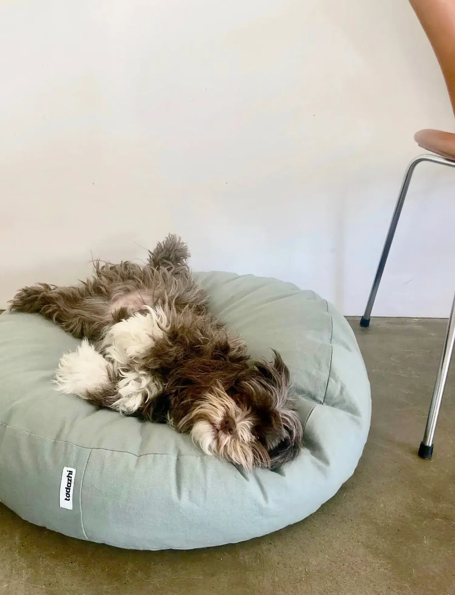 Rund indermadras betrukket med økologisk bomuldsstof, smukt syet. Dejlig blød med en fasthed, der holder formen. Velegnet til høje niveauer af daglig brug. Tilføj dette skønne sted til dit firbenede familiemedlem og dit hjem.