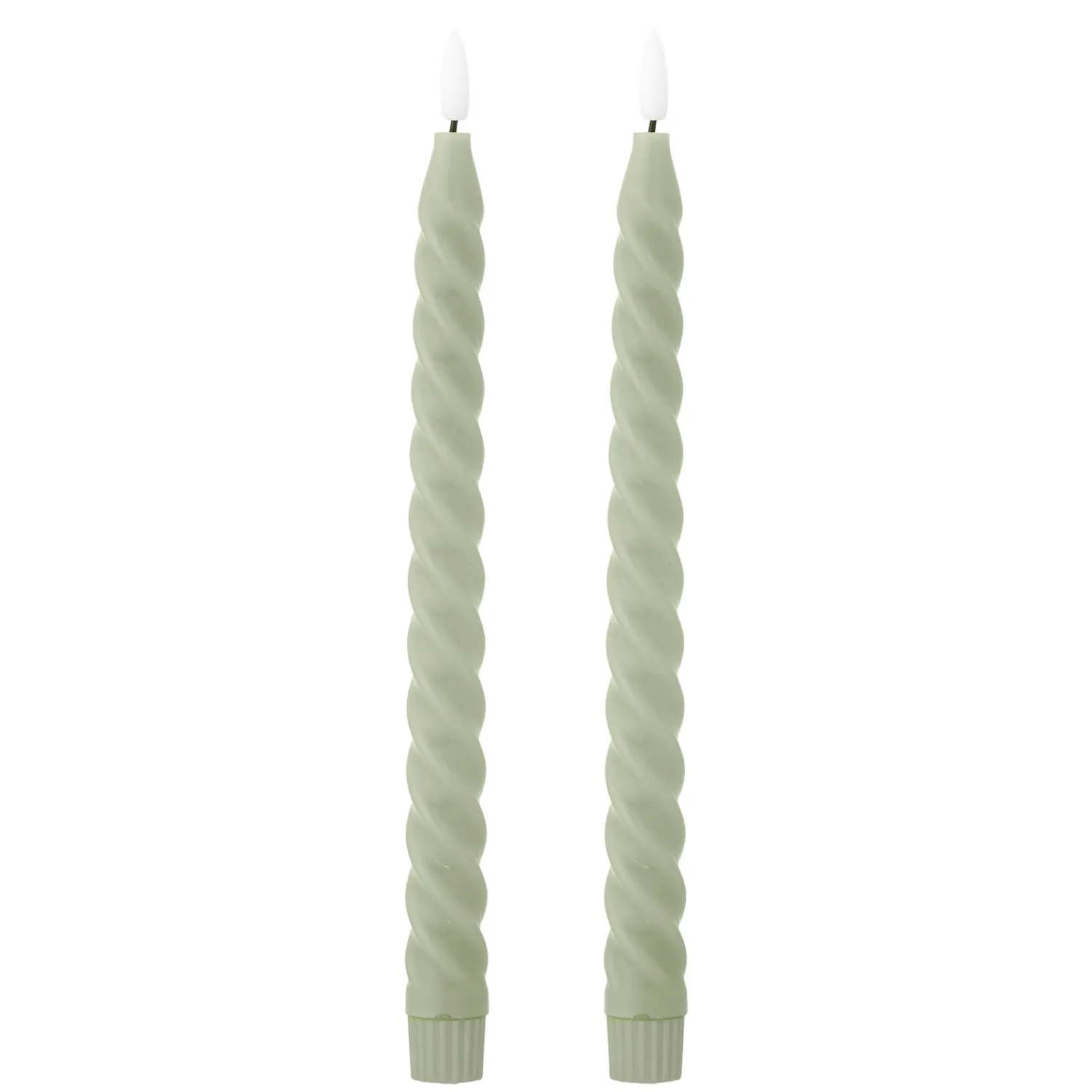Skab stemningsfuld belysning med disse håndlavede LED-lys fra Bloomingville. Med en højde på 28,5 cm og en diameter på 2,2 cm får du to slanke lys med et snoet design og en naturlig flammeeffekt i toppen.