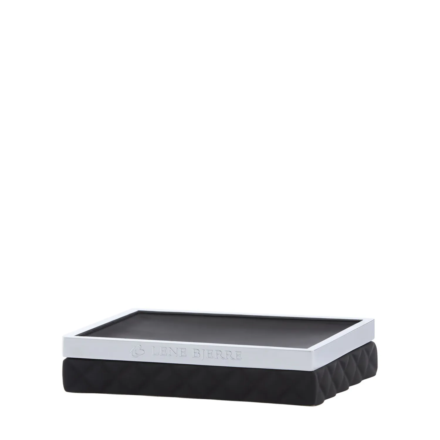 Harlekin mønstret sort keramik sæbeholder med sølv top. Denne Portia sæbeholder måler L13xB10xH3 cm. og er perfekt til opbevaring af sæben på badeværelset, hvor den vil være både praktisk og dekorativ på én og samme tid. Du kan også bruge sæbeholderen til opbevaring af smykker og ringe eller måske noget helt tredje.
