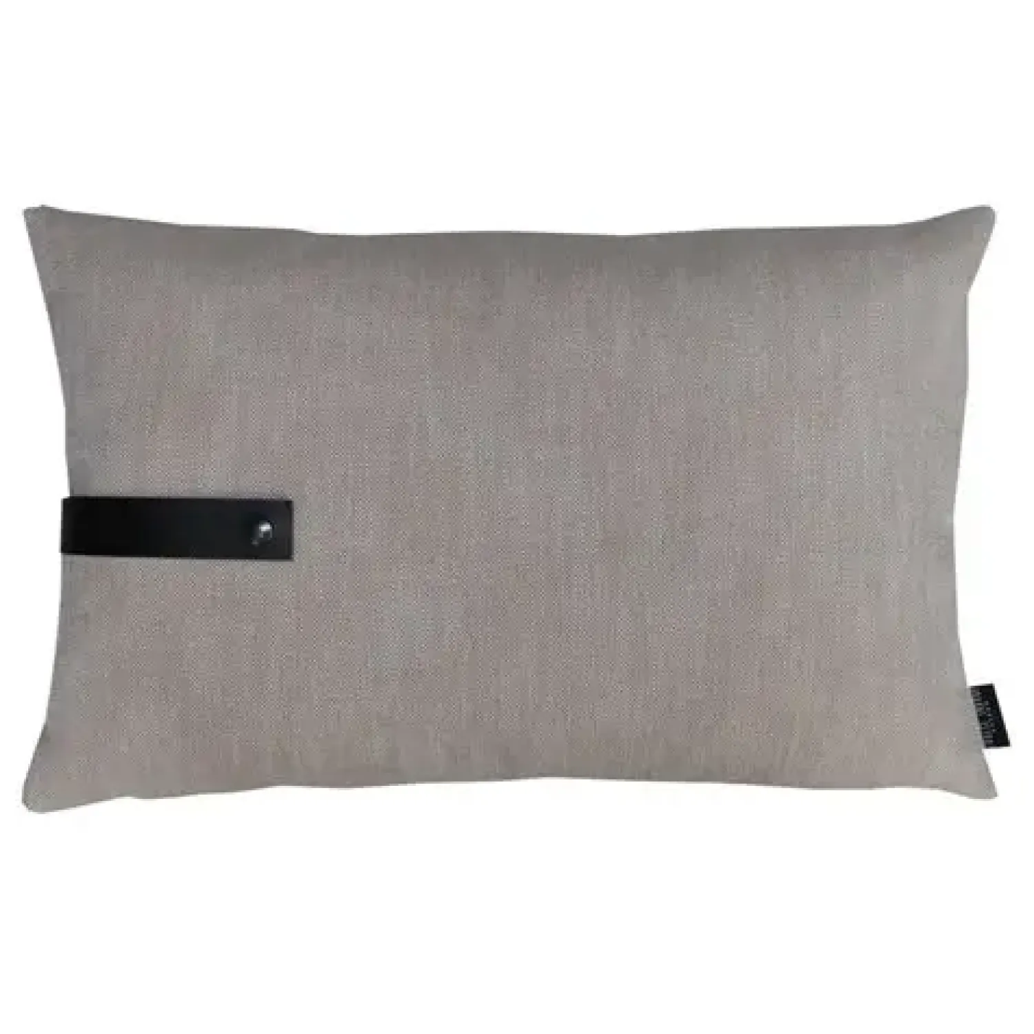 Denne flotte pude fra Louise Smærup er lavet i vævet møbelstof af høj kvalitet. Puden har en lys sandfarve, der giver et simpelt og lækkert udtryk og giver dig mulighed for at style puden, som du ønsker. En sort kernelæderrem er påført puden, hvilket tilføjer en fin detalje.