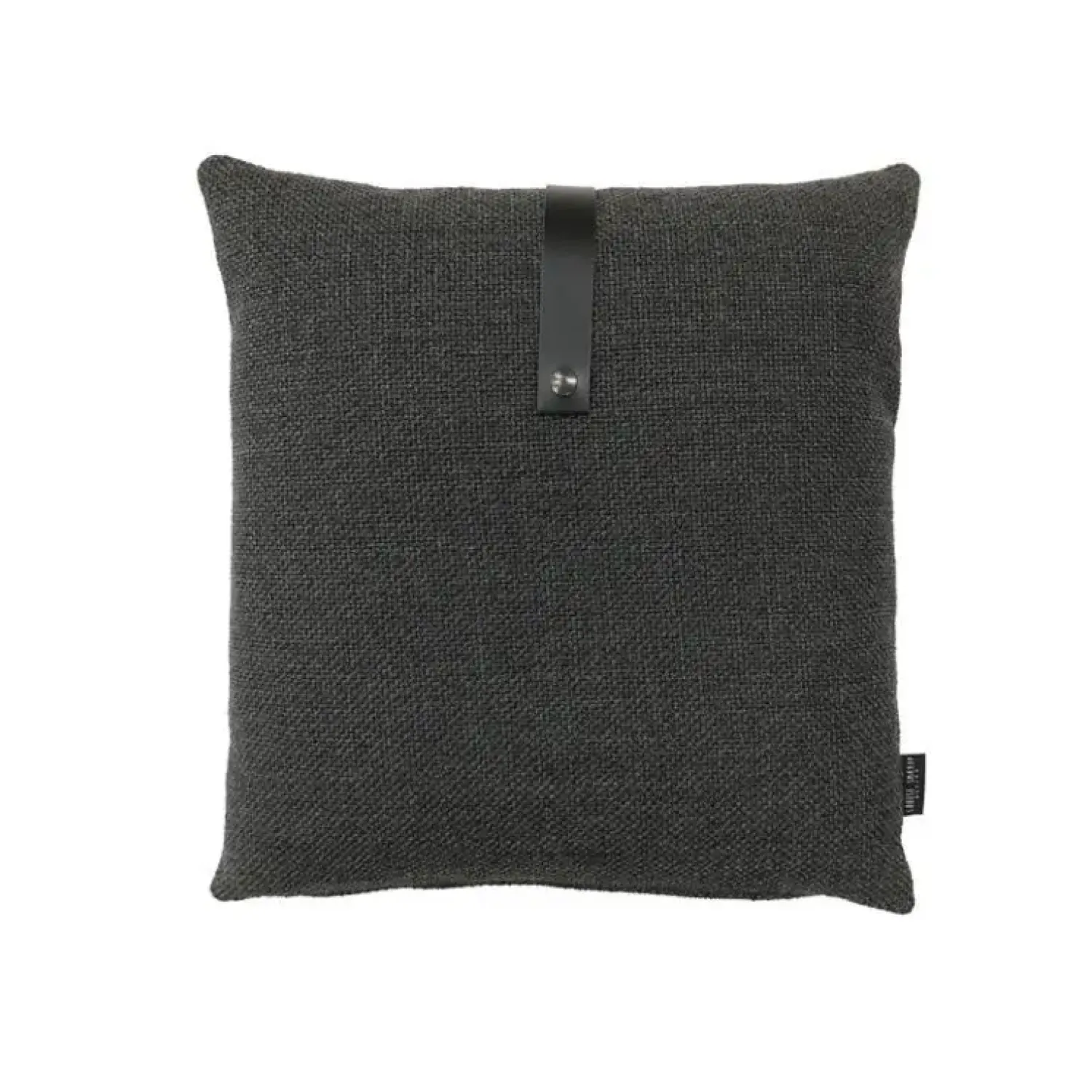 Super flot pude, syet i dejligt blødt mono twist af fineste kvalitet, som giver et simpelt og lækkert udtryk, som gør, at den kan styles på mange måder og passer ind i hjem med forskellige indretningsstile. Puden er påført en læderrem i sort kernelæder. Læderremmen går igen i Louise Smærups tekstildesigns, og skaber en diskret, men unik signatur for hendes forskellige designs.
