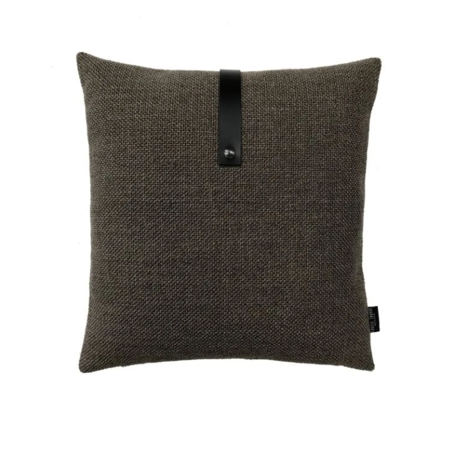 Super flot pude, syet i dejligt blødt mono twist af fineste kvalitet, som giver et simpelt og lækkert udtryk, som gør, at den kan styles på mange måder og passer ind i hjem med forskellige indretningsstile. Puden er påført en læderrem i sort kernelæder. Læderremmen går igen i Louise Smærups tekstildesigns, og skaber en diskret, men unik signatur for hendes forskellige designs.