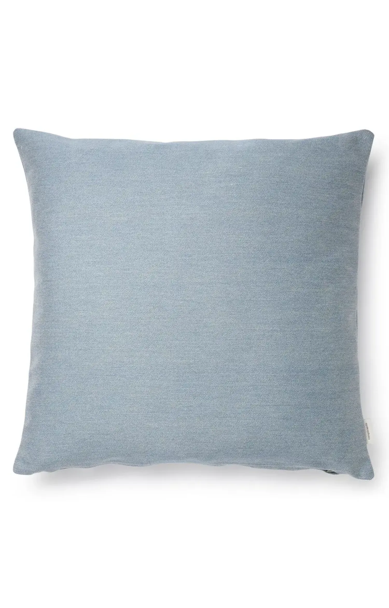 Lækker ensfarvet udendørspude i en støvet blå. Match med Outdoor Fine Stripe puder og skab den skønneste oase i haven og på terrassen. Outdoor Basic er lavet i special stof, som er vandafvisende og tåler solens stråler.