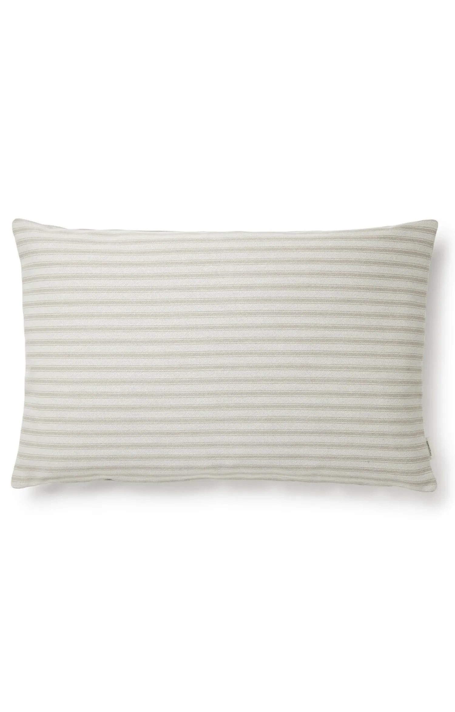 Stribet udendørspude i sand og beige. Match med puderne Outdoor Basic og Outdoor Stripe, og skab den skønneste oase i haven og på terrassen. Outdoor Fine Stripe er lavet i special stof, som er vandafvisende og tåler solens stråler. Perfekt og let at tage med, når du skal nyde en god dag på stranden.