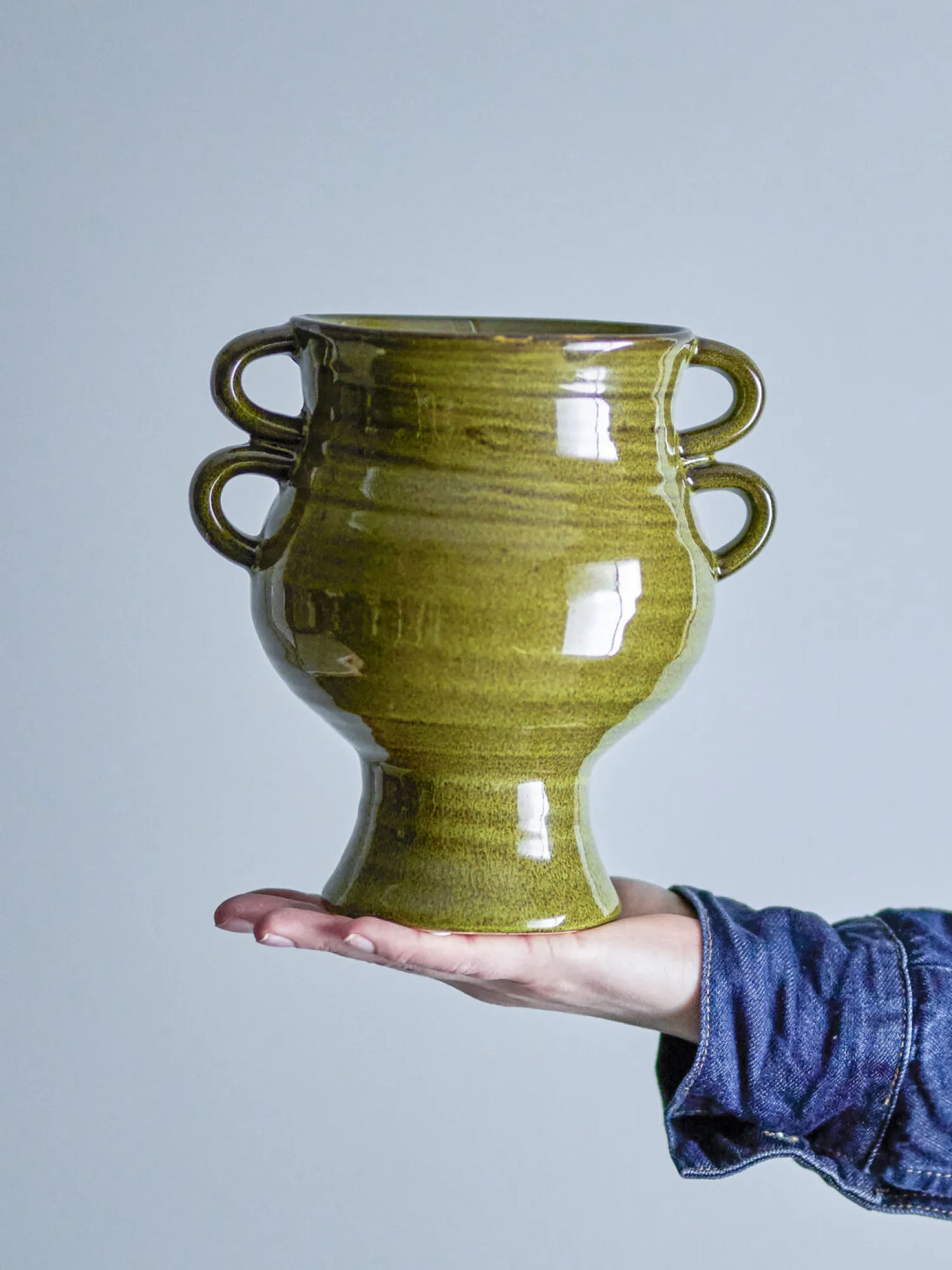 Raia urtepotteskjuleren er designet med fokus på både æstetik og funktionalitet. Den brede krop og den udvidede bund sikrer optimal stabilitet, hvilket gør den ideel til forskellige plantestørrelser. Den glansfulde, grønne overflade har subtile farvevariationer, som skyldes glasurens unikke egenskaber. Dette giver hvert stykke sin egen karakter og gør det til et unikt indslag i din indretning.