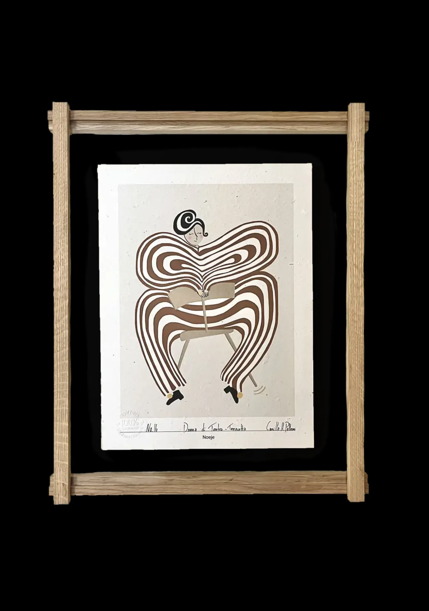 VERK rammen er designet af den danske møbeldesigner Mikkel Toftgaard Frandsen. Træsrammen er designet til at fremhæve væg kunst på en let og elegant måde, hvor træstellet med de to akryl-plader frigør værket fra væggen.Dette skaber et helt særligt lysindfald og en smuk iscenesættelse af dit kunstværk. Hver ramme er omhyggeligt fremstillet i Danmark ved brug af overskydende træ fra vores egen produktion og genanvendt akryl..VERK kan anvendes til kunsttryk og plakater i forskellige størrelser, alt efter hvilket udtryk man ønsker.