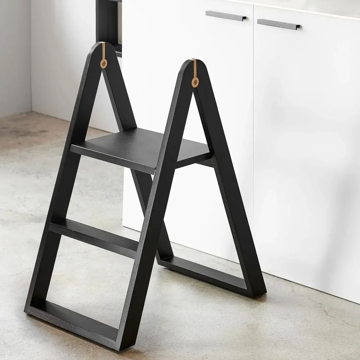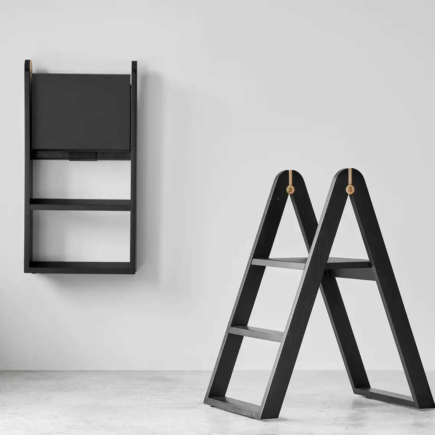 Skal trappestigen i brug, foldes den næsten helt ud, det øverste trin klappes ned, og stigen foldes helt ud så trinet låses fast i stellet. Reech kommer med et fint beslag, som gør det muligt at hænge trappestigen på din væg eller gemt væk i skabet. På den måde, kan du pakke trappestigen sammen når den ikke er i brug, uden at den optager unødvendig gulvplads.