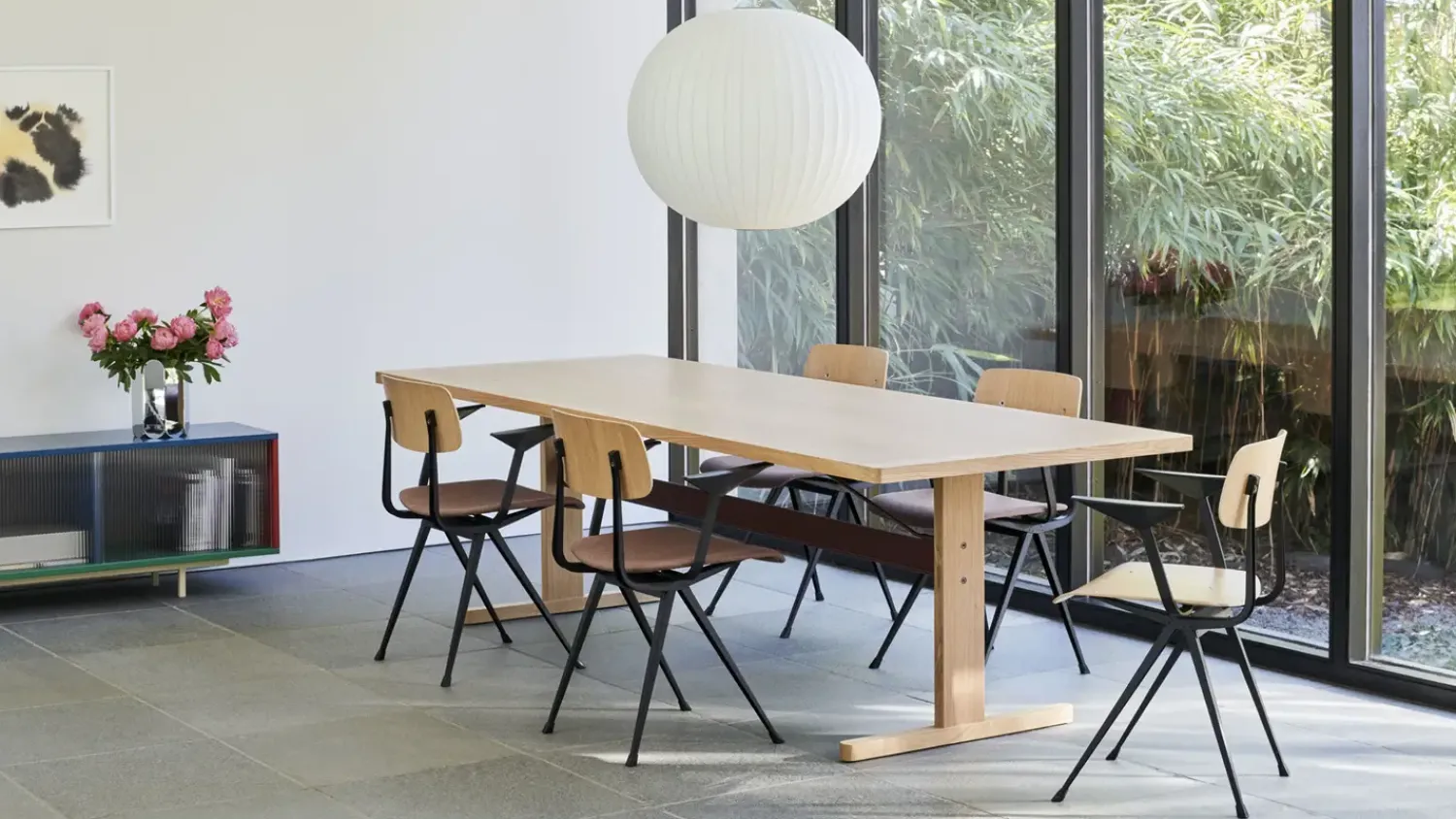 Dette Colour Cabinet fra Hay kombinerer praktisk opbevaring med et farverigt udtryk. De ribbede glaslåger giver nem adgang til dine ting, mens den grønne top og de røde sider skaber et unikt udtryk i dit hjem.