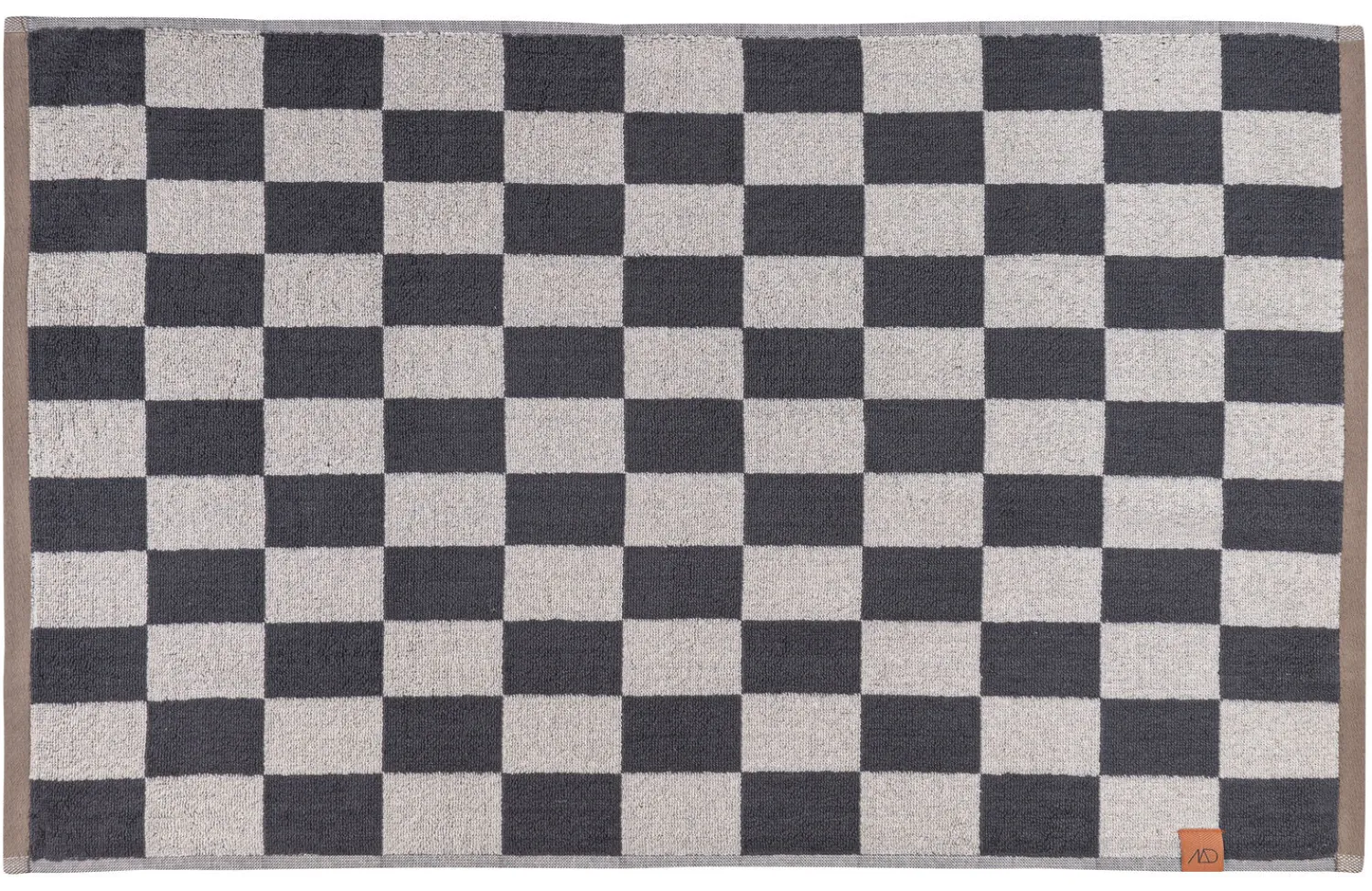 Giv dit badeværelse et stilfuldt løft med RETRO-bademåtten fra Mette Ditmer. Bademåtten kombinerer et skarpt grafisk look i mørkegrå og off-white med en lys brun kant, prydet med en orange strop og label. Fremstillet af 100% økologisk bomuld og certificeret af OEKO-TEX®, er RETRO-bademåtten blød mod dine fødder.