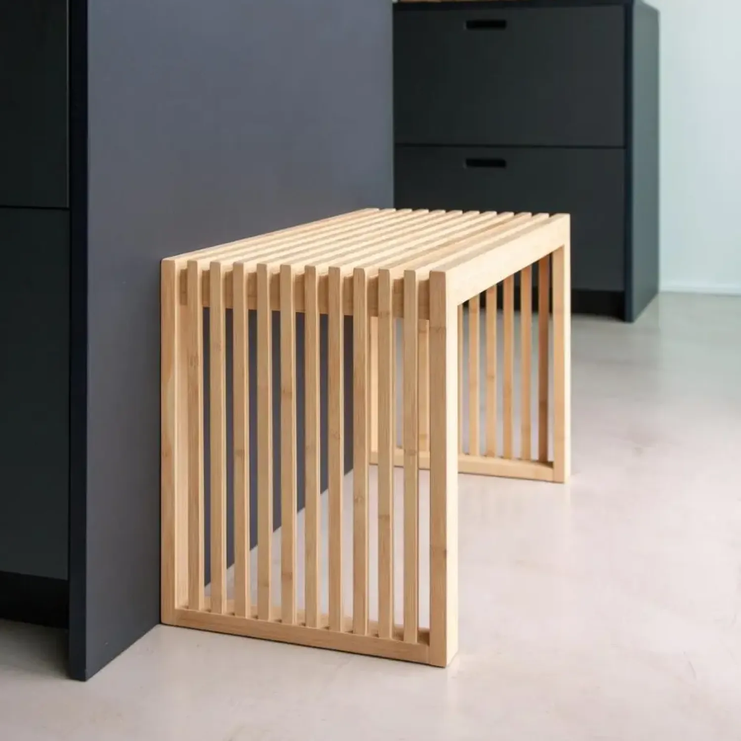 Cinas – Rib 2-pers bænk i bambus er et funktionelt møbel til hjemmet. Denne bænk er designet med fokus på enkelhed og kan anvendes i forskellige rum, hvor der er behov for ekstra siddepladser. Den minimalistiske stil gør den let at integrere i forskellige indretninger, uanset om det er moderne eller mere traditionelle hjem.