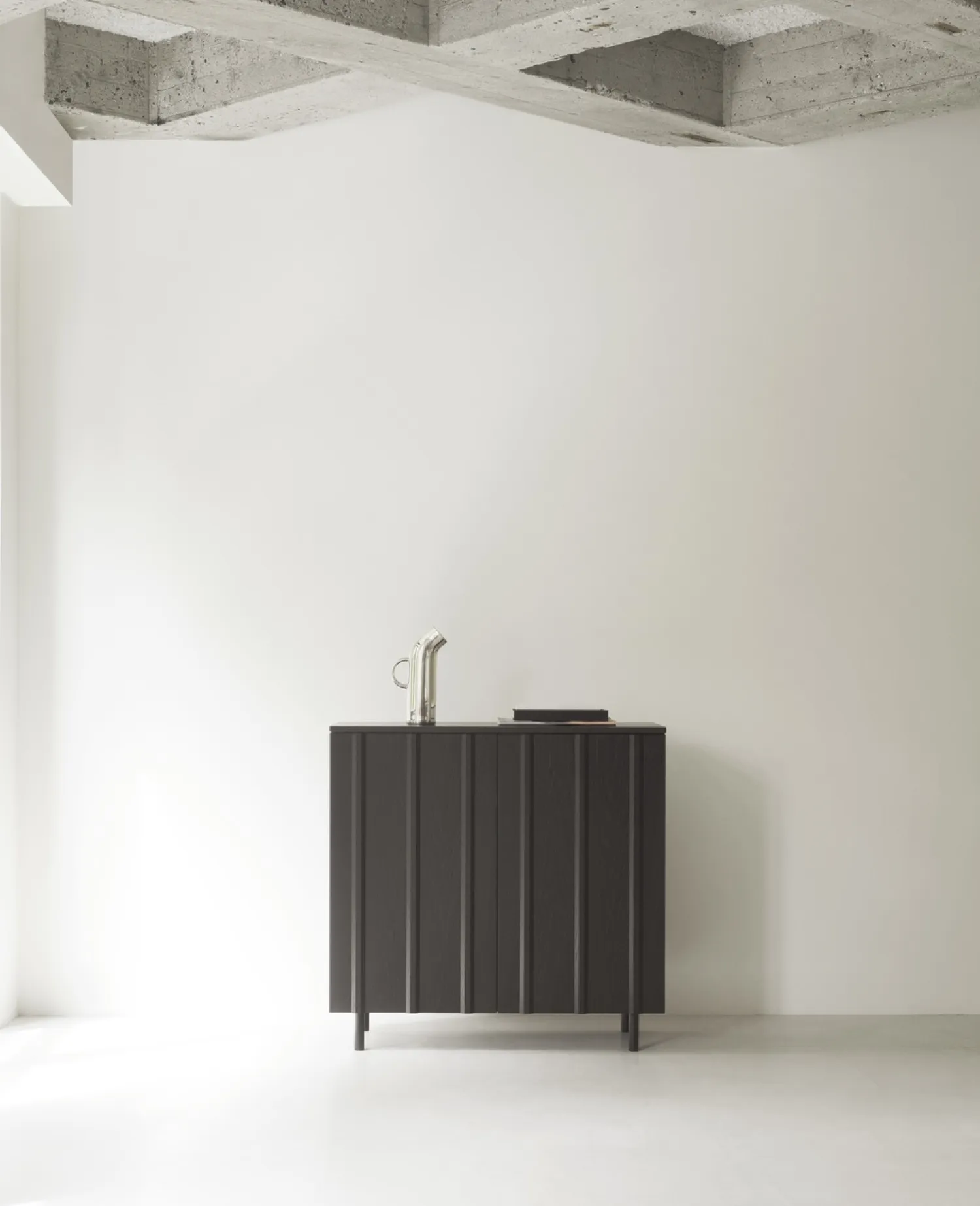 Du får en kompakt opbevaringsløsning, der passer godt til den moderne bolig. De vertikale ribber tilfører dybde til designet, mens den robuste konstruktion sikrer holdbarhed i hverdagen. Den står elegant på fire ben.