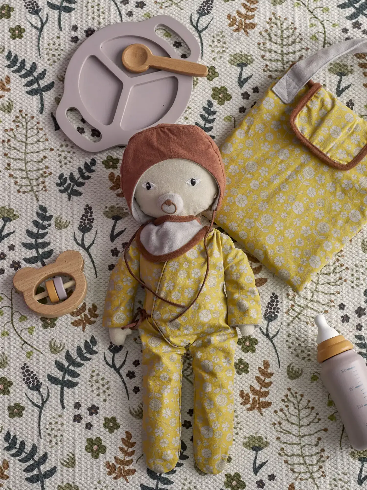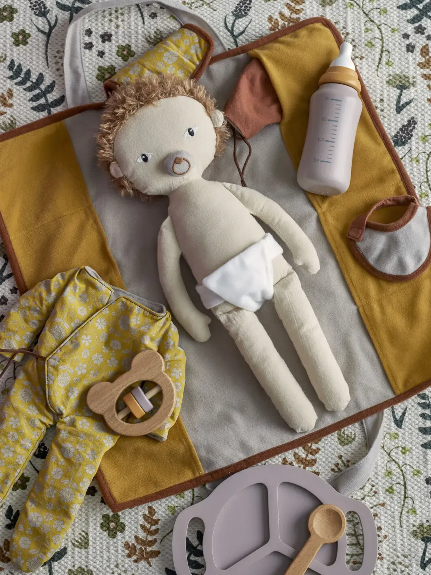 Riina legesættet i lotustræ er perfekt til babyrolleleg med bamser og dukker.