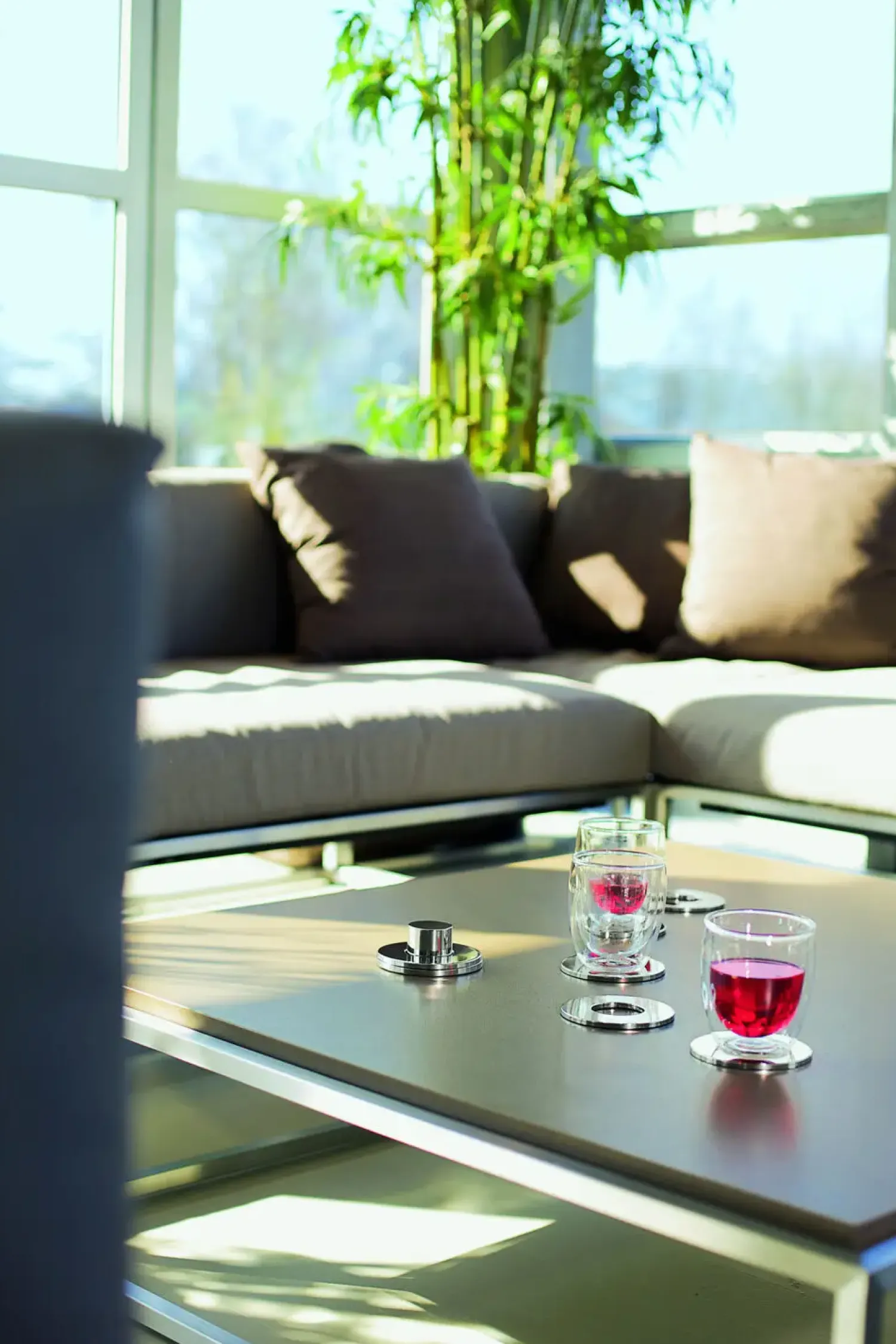 Den cirkulære form med et centralt hul giver et sikkert greb om glasset. Overfladen i nikkel er holdbar og let at rengøre. Bordskånernes stabelbare egenskab gør opbevaring nem og pladsbesparende, hvilket er praktisk i mange hjem. Med deres robuste konstruktion i nikkel er disse bordskånere designet til effektivt at beskytte dine borde.