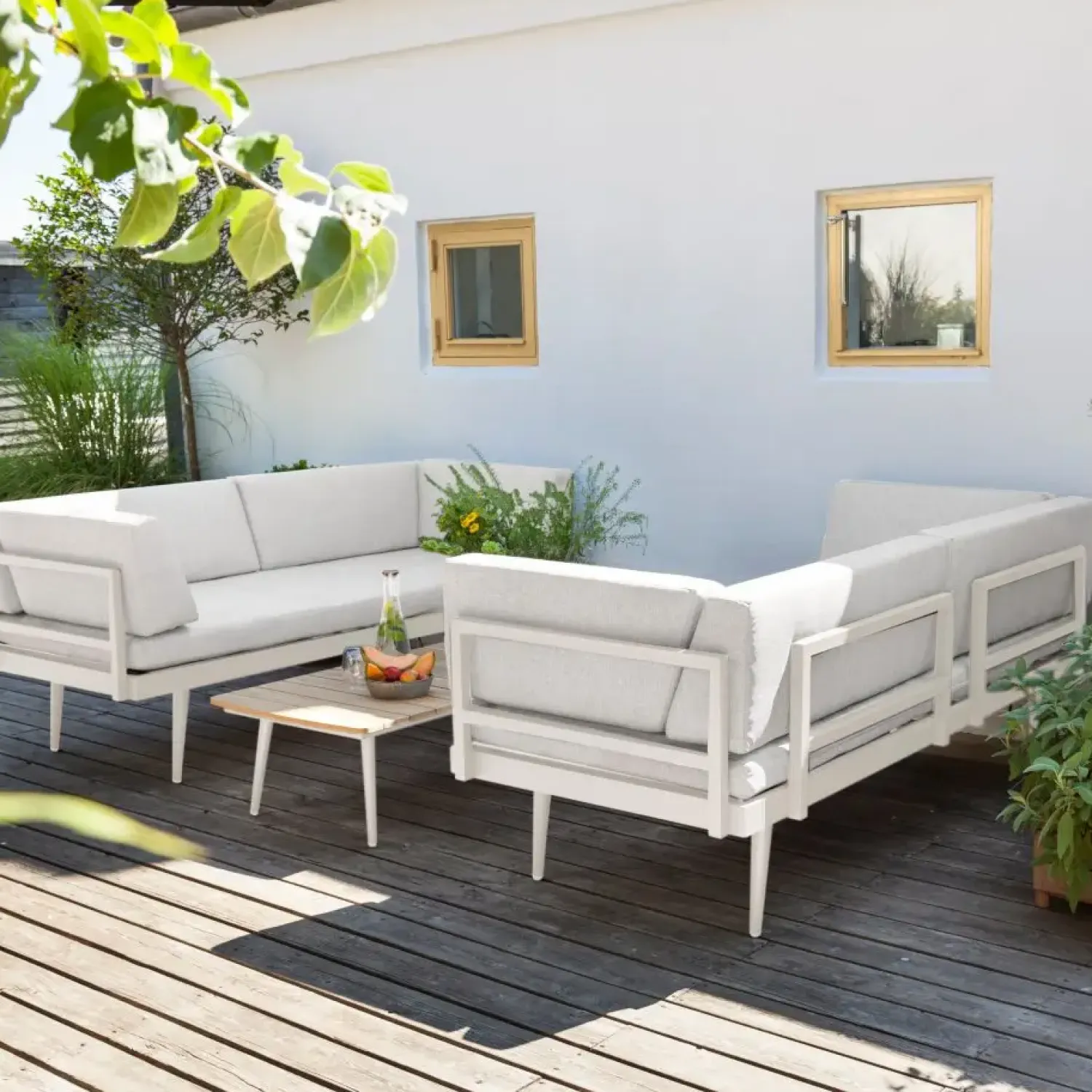 Transformer din have til et stilfuldt fristed med Cinas – Rio lounge sofa. Dette sofasæt i to dele indbyder til afslapning og sociale sammenkomster under åben himmel, ideelt til den designbevidste haveejer, der ønsker at skabe en indbydende atmosfære i det fri.