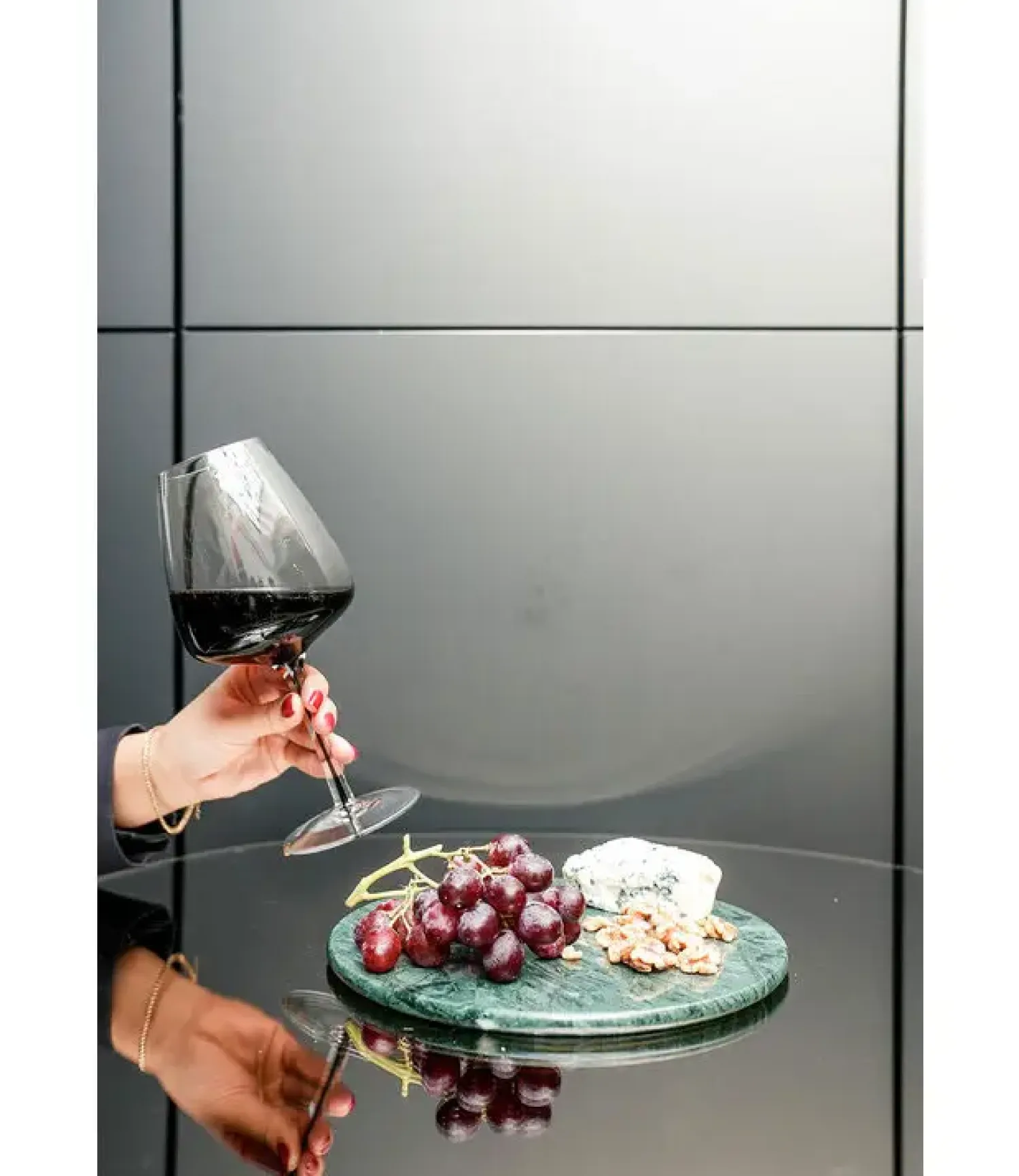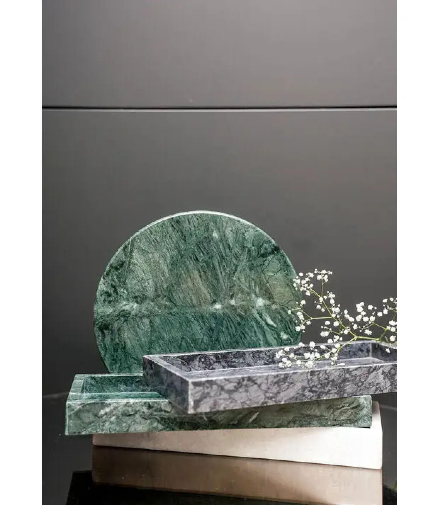 – Rund bakke i marmor – Grøn – Ø24 cm*WELLmark Discount