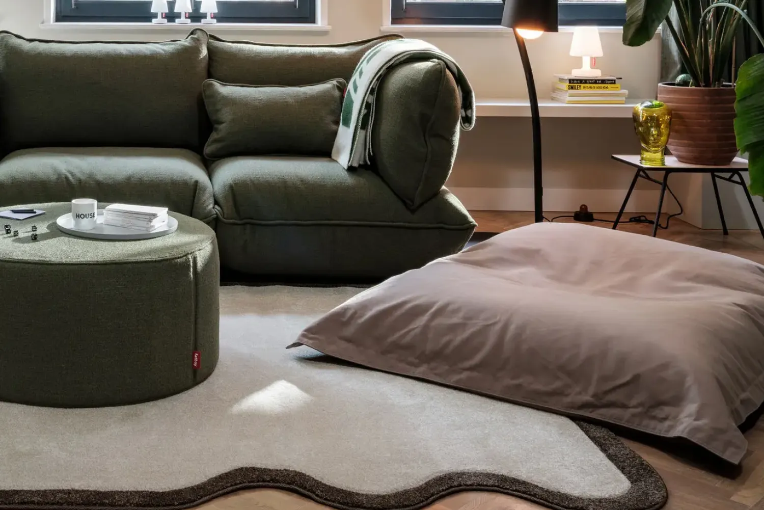 Denne sækkestol fra Fatboy kombinerer komfort med miljøbevidst design. Betrækket er fremstillet af 100 % genanvendt polyester fra plastflasker, og det slidstærke materiale minder om traditionelt bomuldscanvas – bare med mindre vand- og energiforbrug i produktionen.