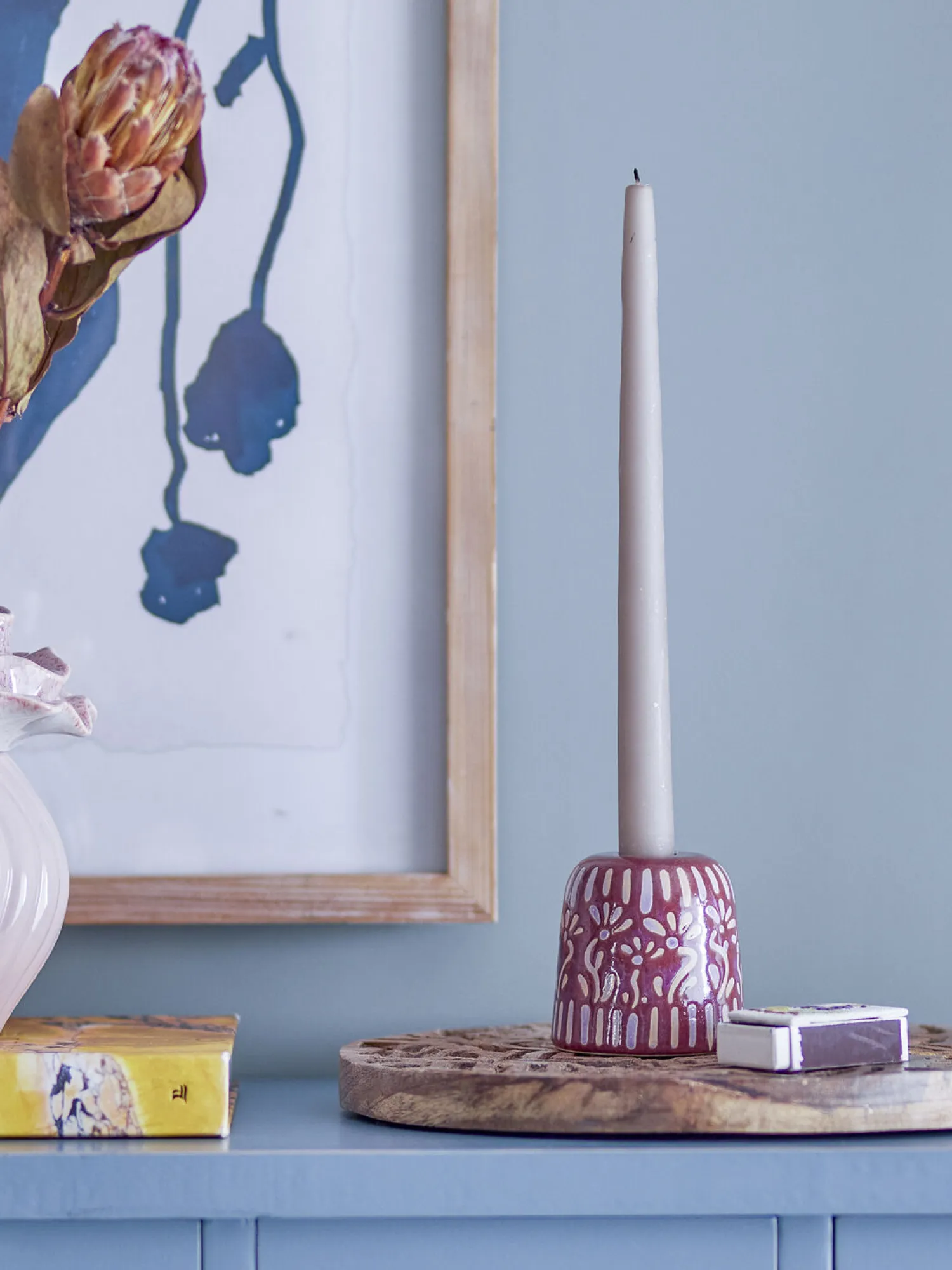 Stentøjet sikrer en robust lysestage, der holder sig flot gennem tiden. Den reaktive glasur giver hvert eksemplar et unikt udtryk, mens den lilla farve tilfører et personligt præg til din indretning.